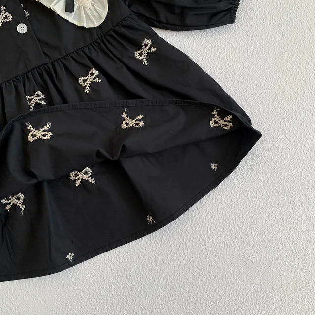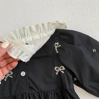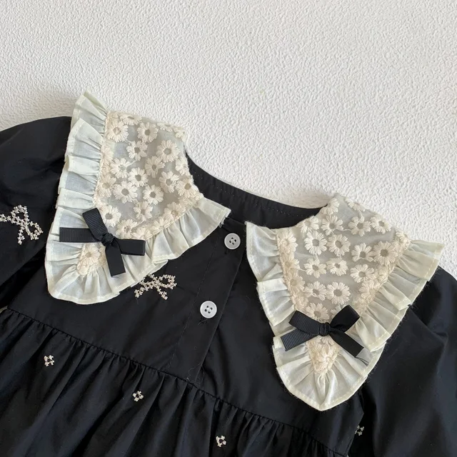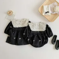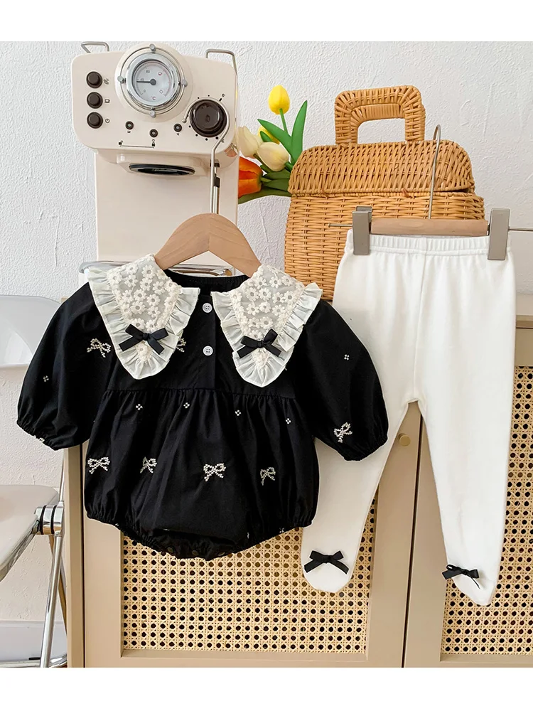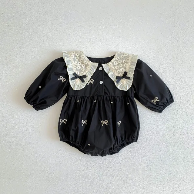 Spring New Lace Collar Baby Romper Infant Black Flower Bodysuit Girls Cotton Jumpsuit Clothes