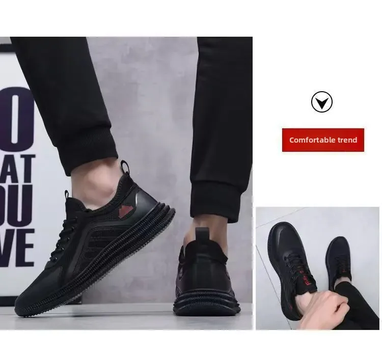Spring New Men's Fashion Shoes Leather Surface Waterproof Large Size Mesh Anti-Odor Trendy All-Match Soft Bottom Casual Sports S