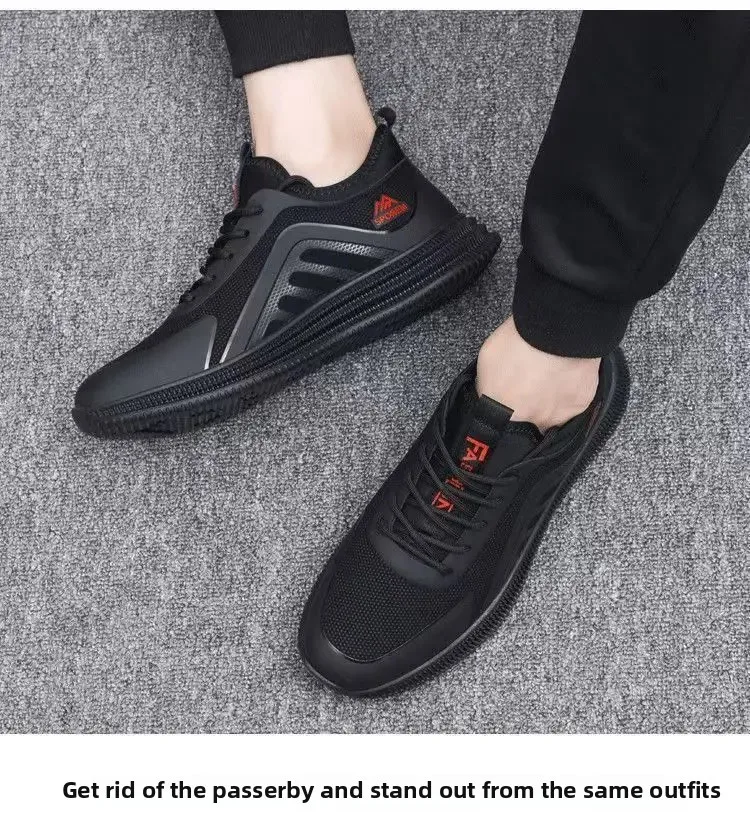 Spring New Men’s Fashion Shoes Leather Surface Waterproof Large Size Mesh Anti-Odor Trendy All-Match
