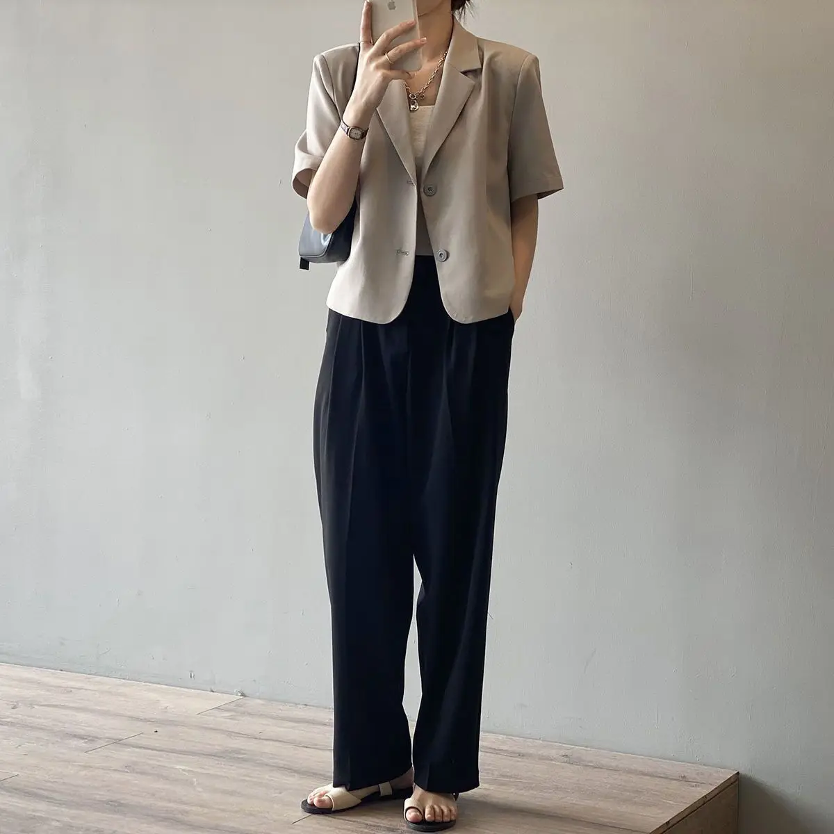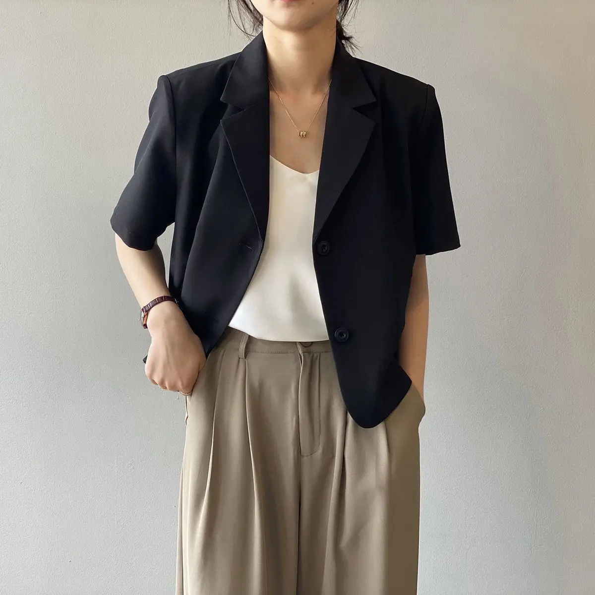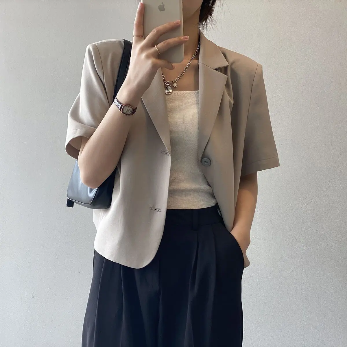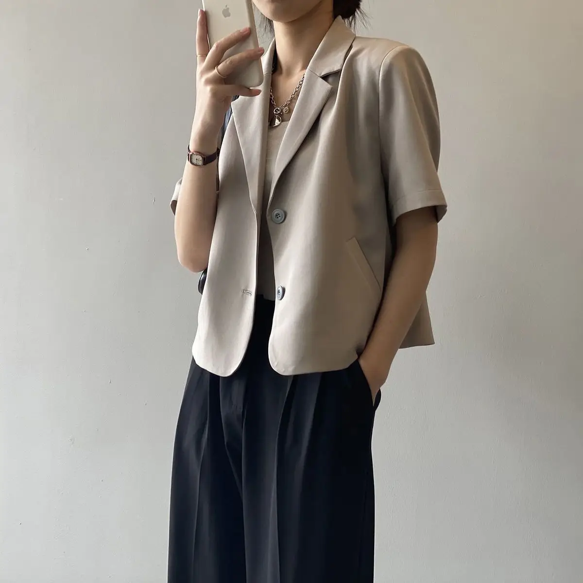This spring/summer collection features a stylish short blazer designed for the modern woman, perfect for warmer weather.