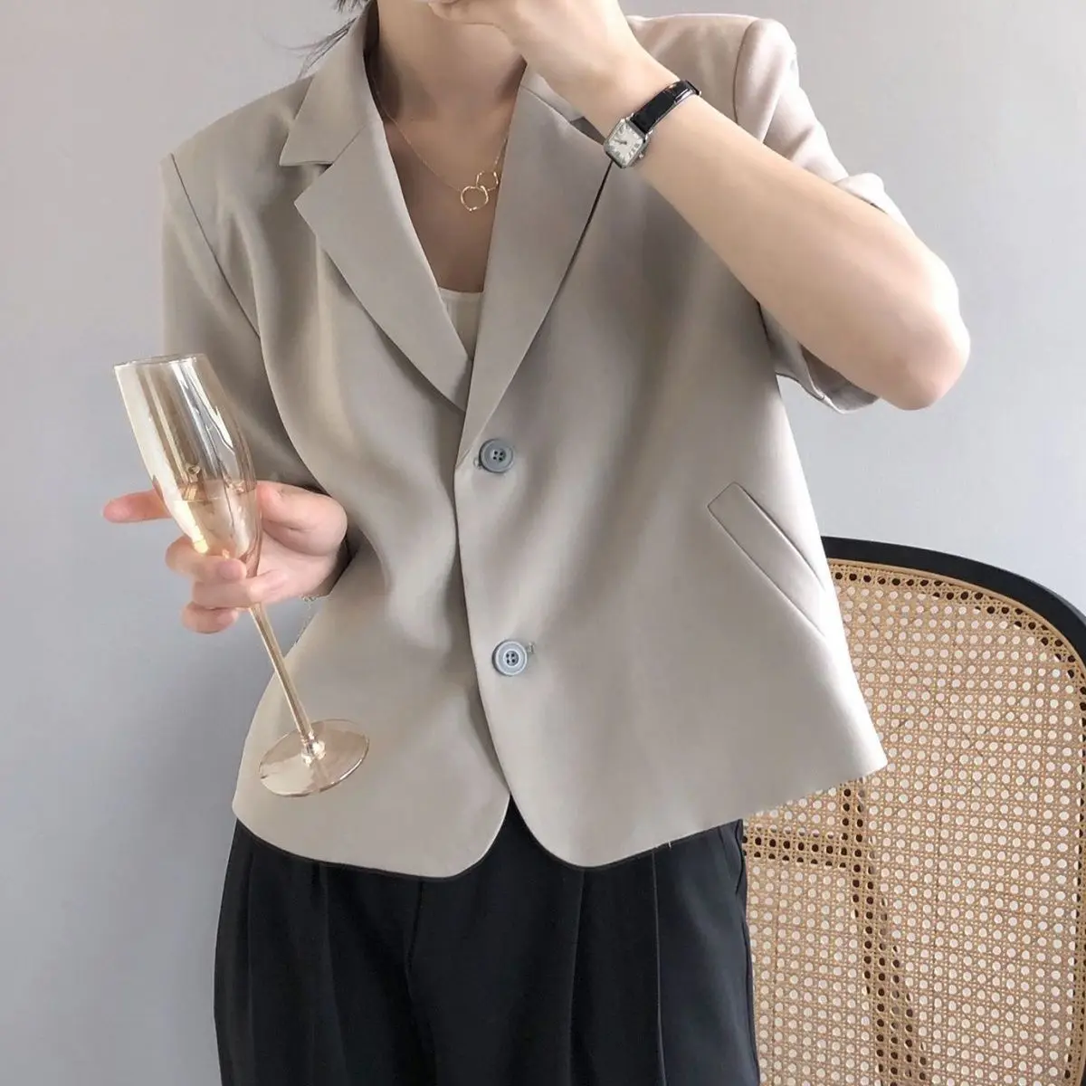 This spring/summer collection features a stylish short blazer designed for the modern woman, perfect for warmer weather.