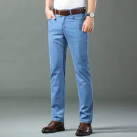 Spring/summer Thin Denim Straight Cotton Stretch Jeans Men Business Casual Cloth High Waist Ice Silk