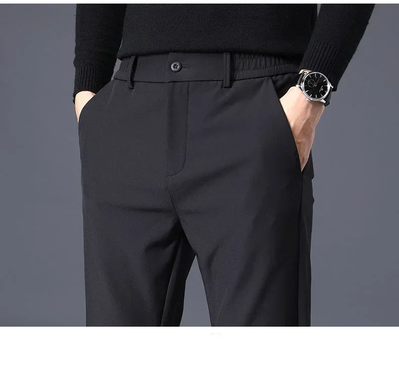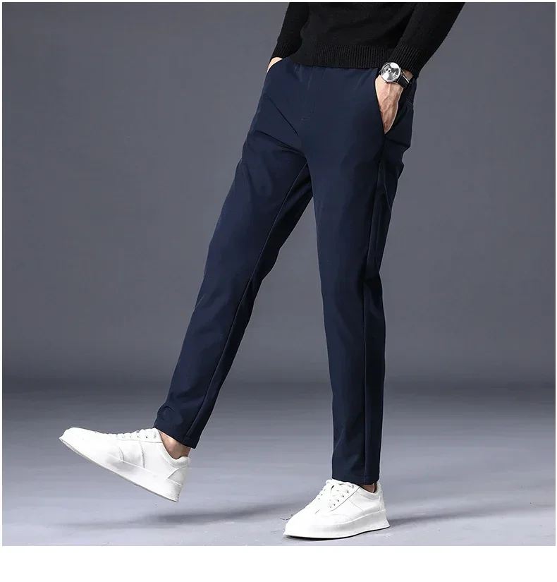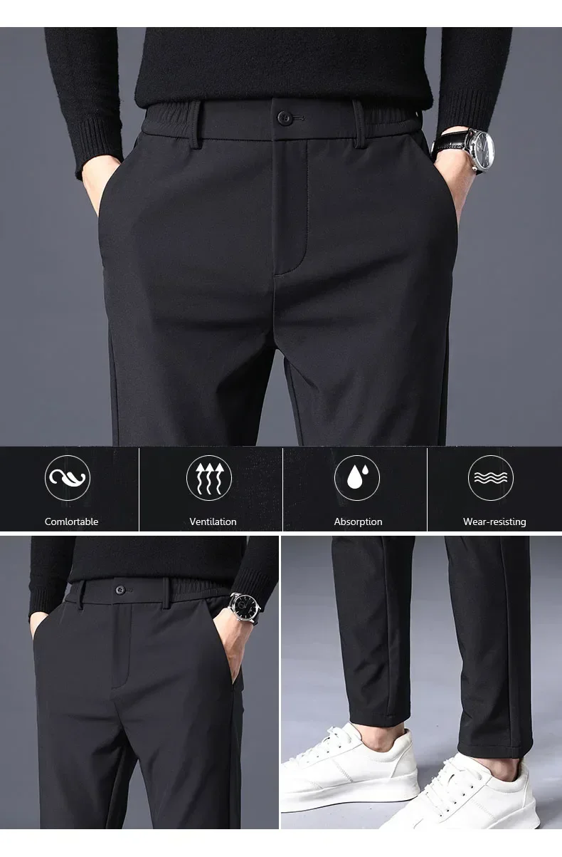 Spring Summer Thin Men’s Business Casual Pants High Elastic Jogger Slim Straight Korean Brand Trousers
