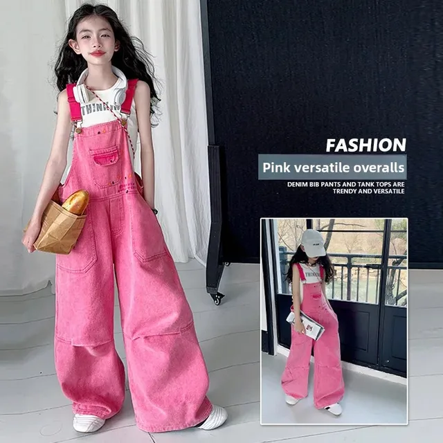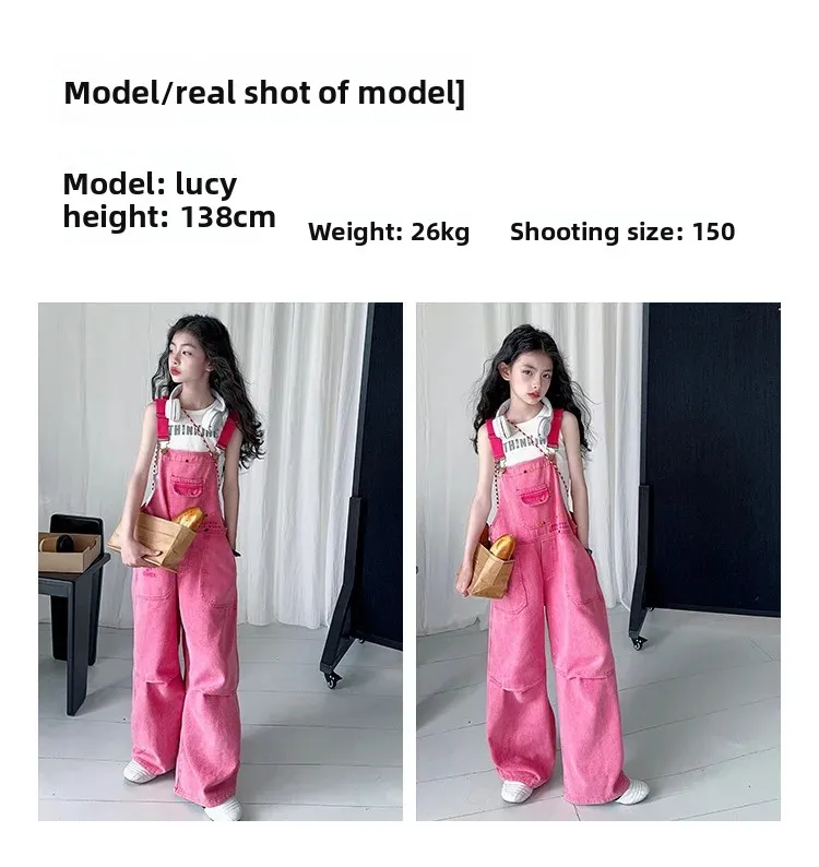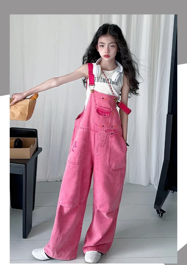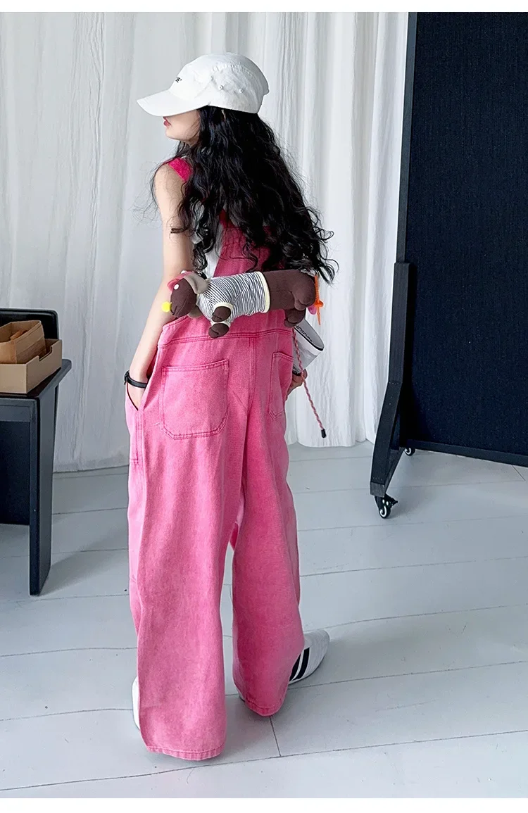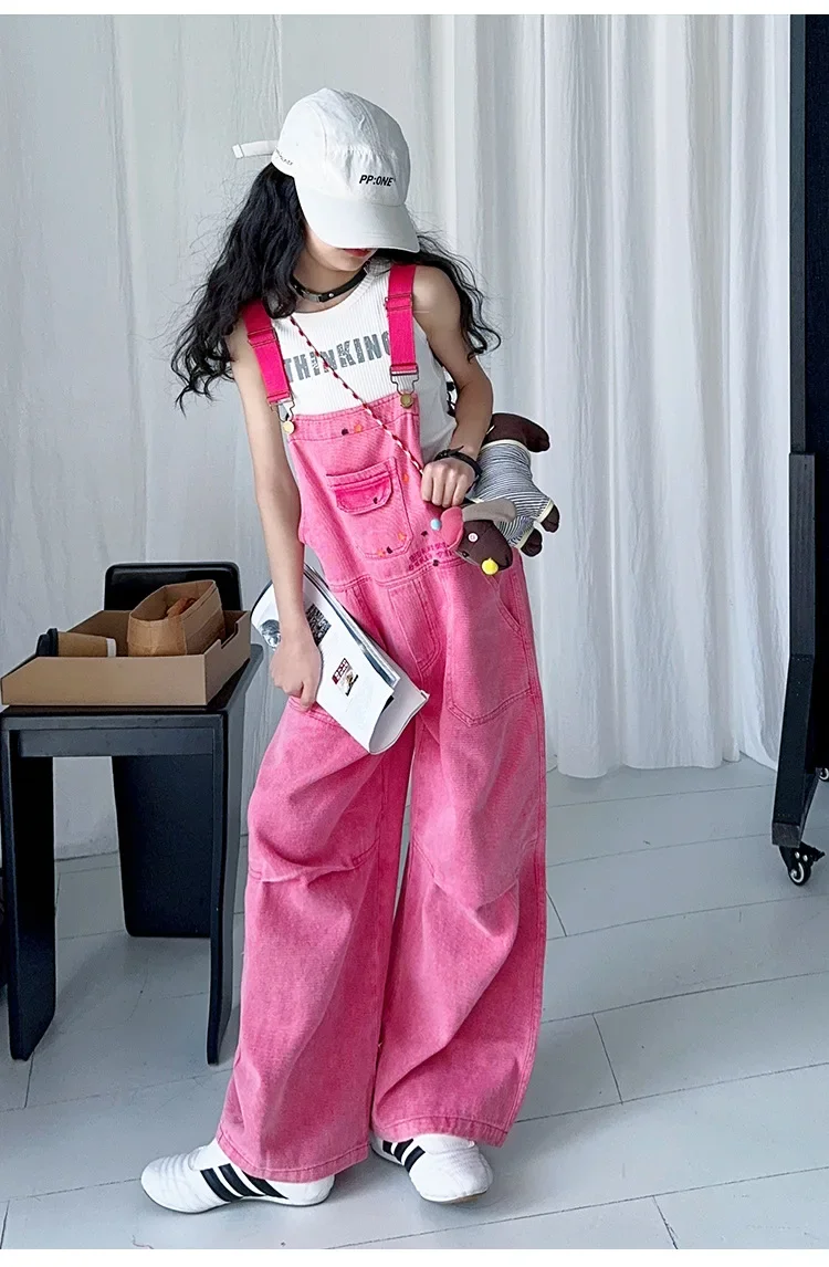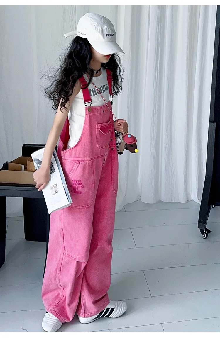 Spring Thin Denim Overalls Girl’s Outfit Set Pink Overall Children’s Clothing Kids’
