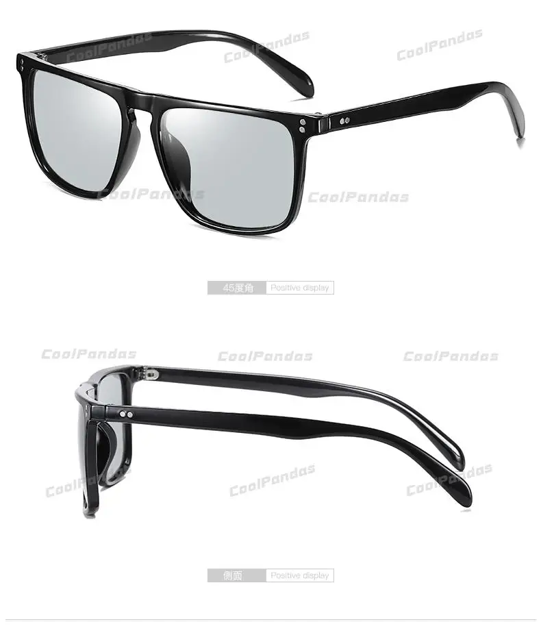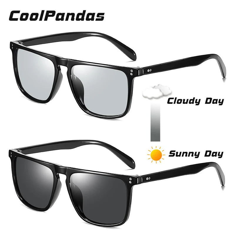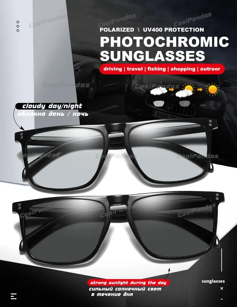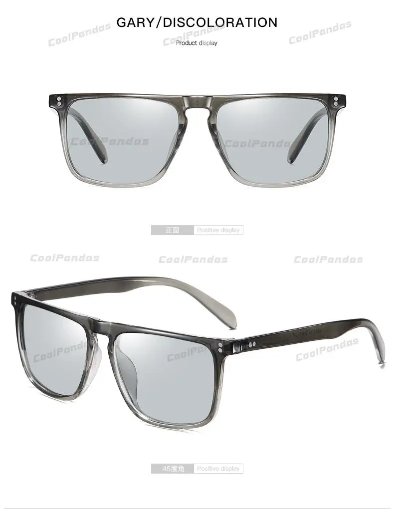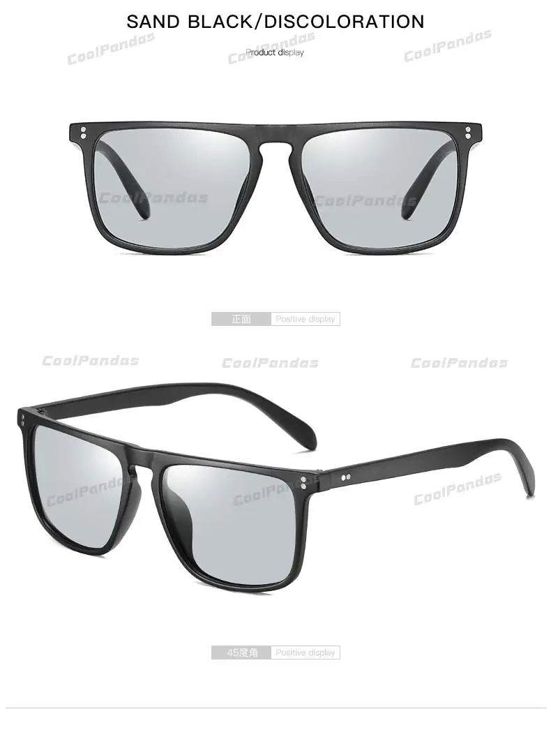New Photochromic Sunglasses Men Polarized Driving Sun Glasses Square Rivet Frame Women Change Color Eyewear UV400 Protection