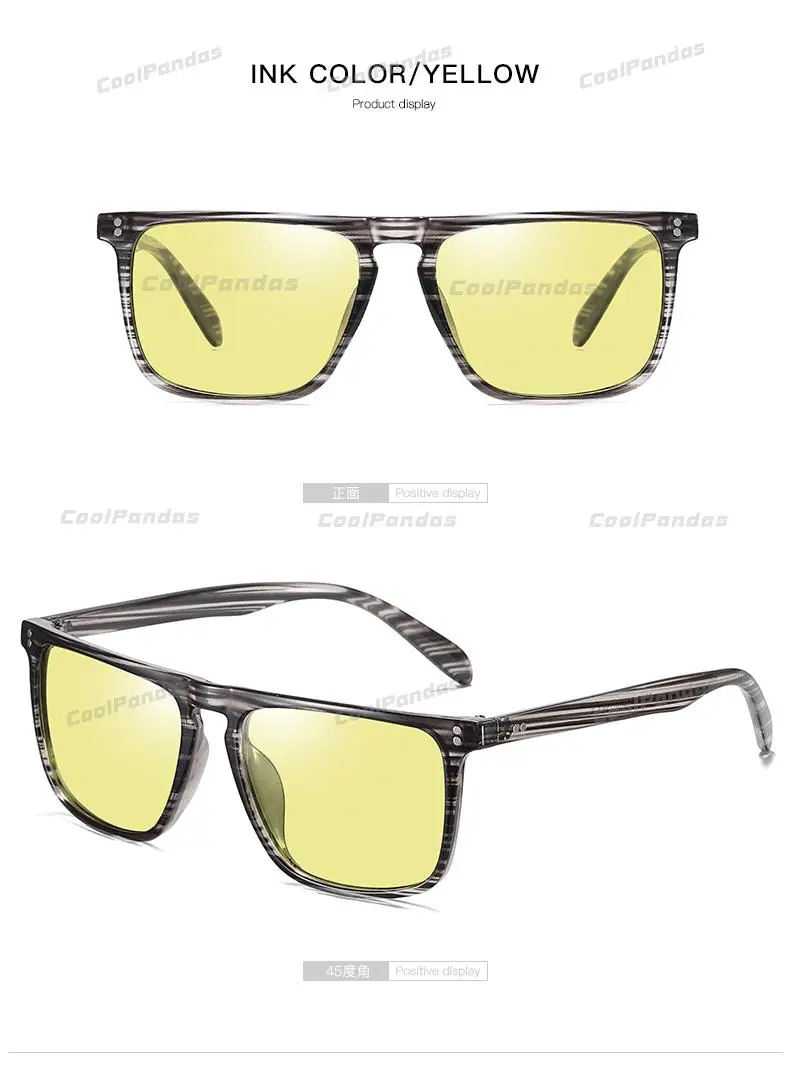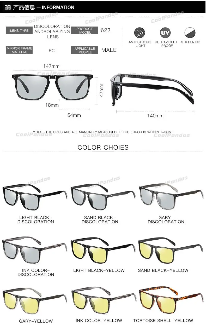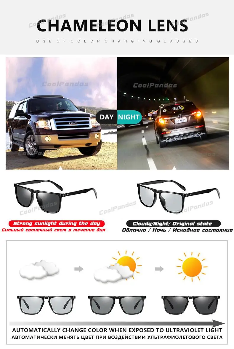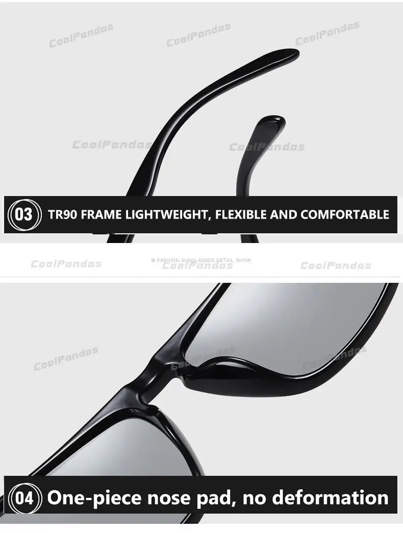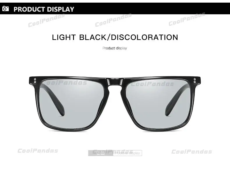 New Photochromic Sunglasses Men Polarized Driving Sun Glasses Square Rivet Frame Women Change Color Eyewear UV400 Protection