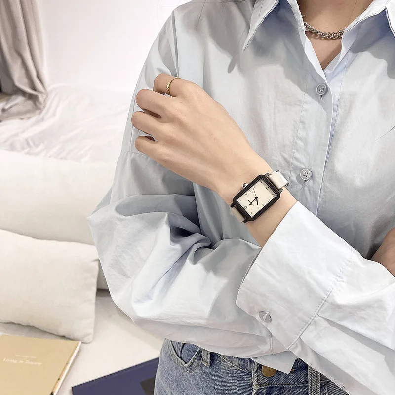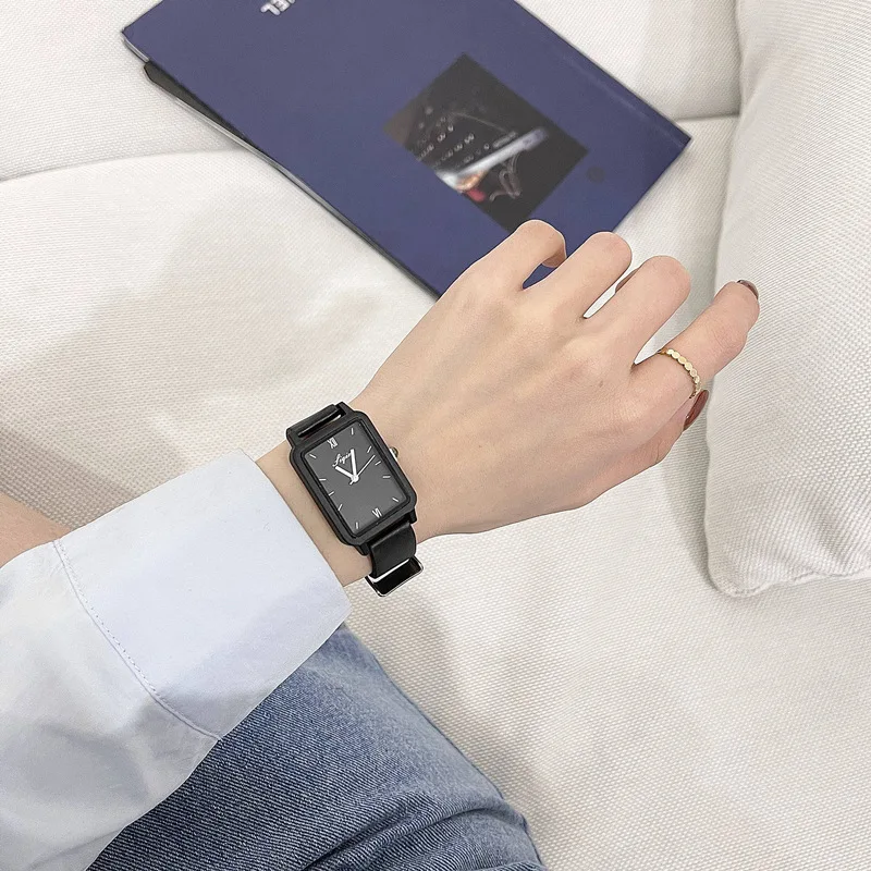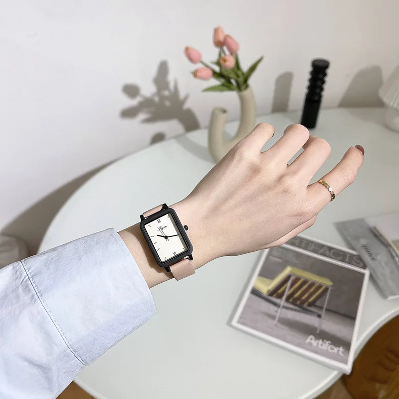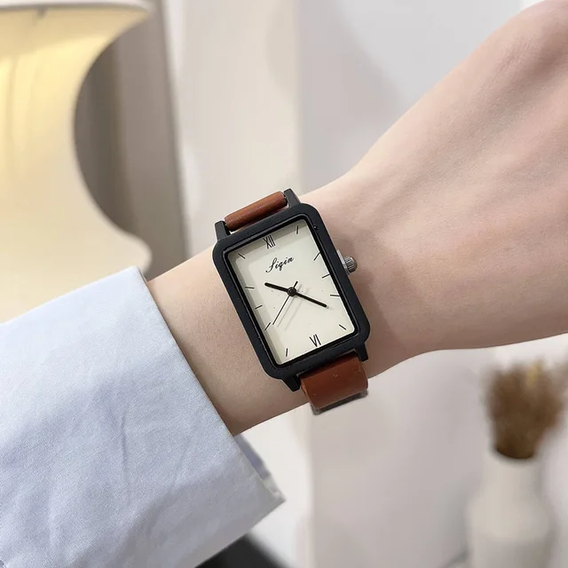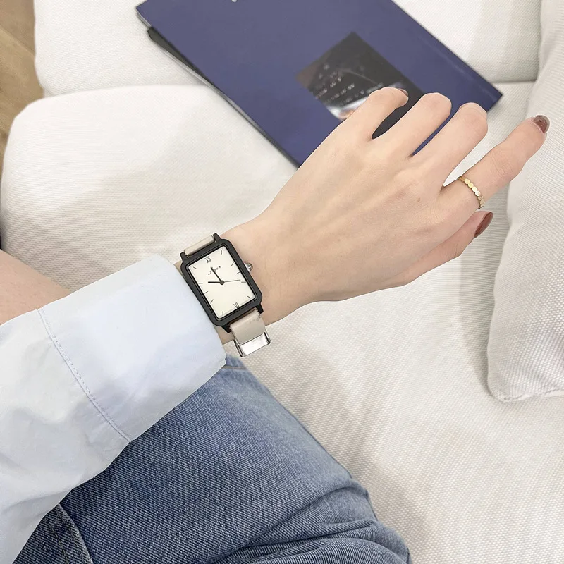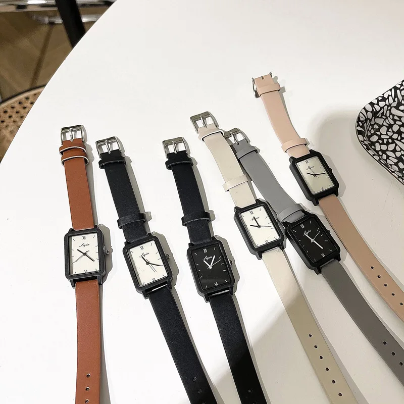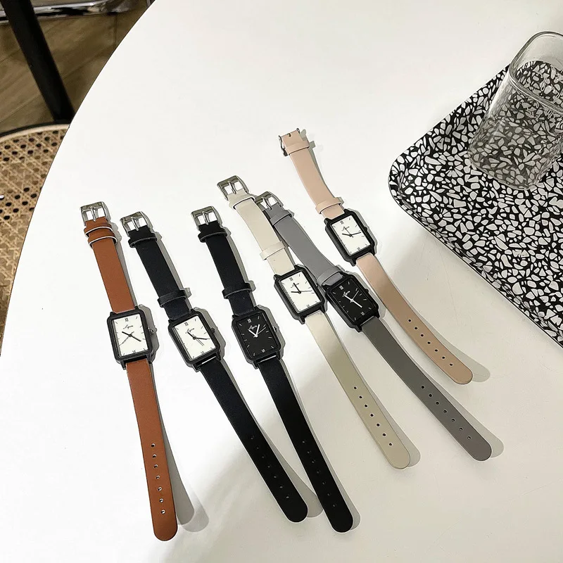 Square Watch for Women Simple Temperament Small and Fresh Korean Version Small and Retro Scale PU Strap