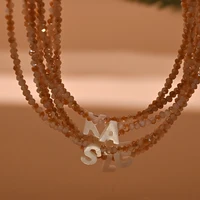 Stainless Steel Shell Initial Necklace for Women Shining Crystal Mother of Pearl Letter Fashion Necklace