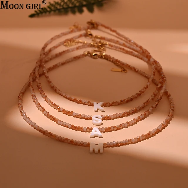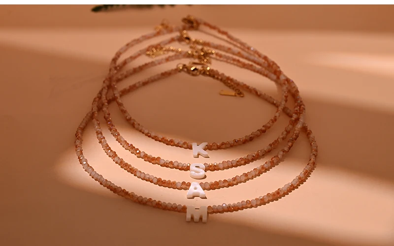 Product Type:Stainless Steel Shell Initial Necklace for Women Shining Crystal Mother of Pearl Letter Fashion Necklace Femme Jewelry