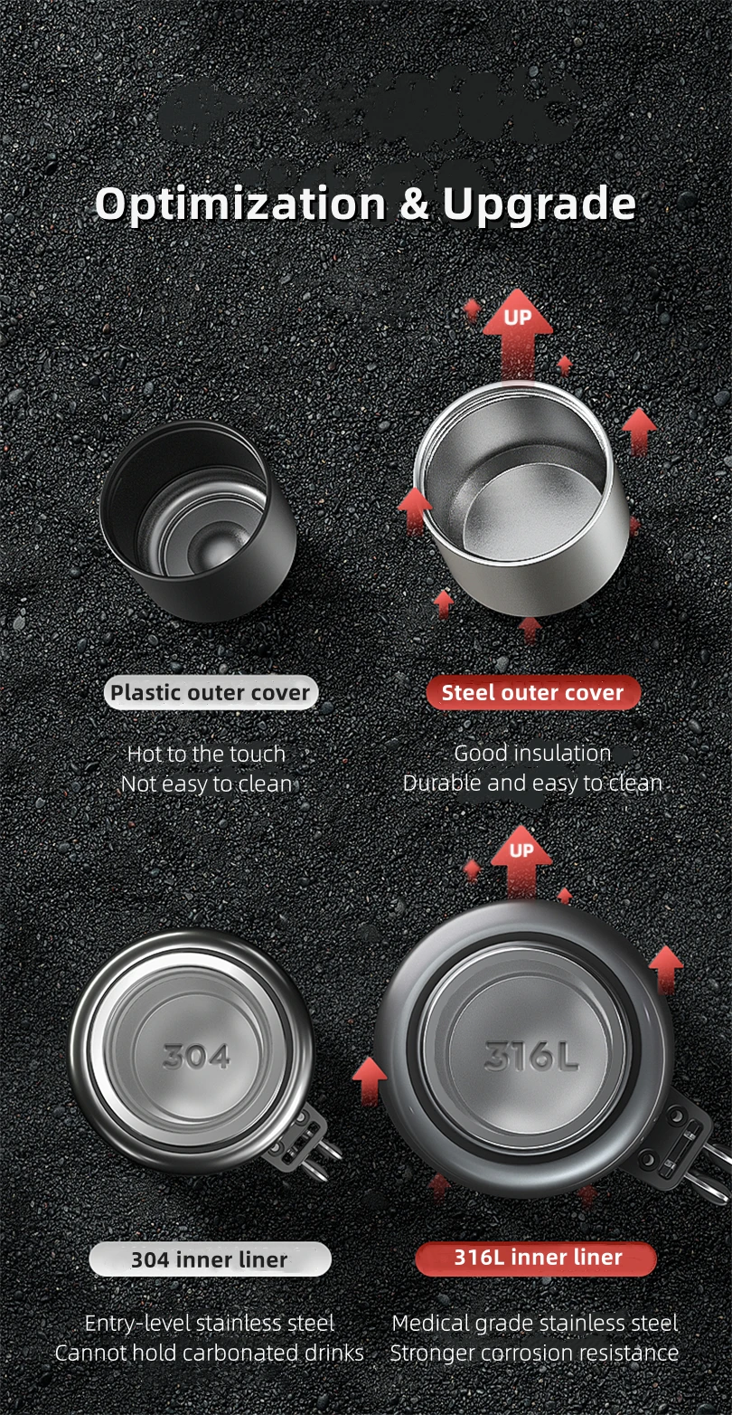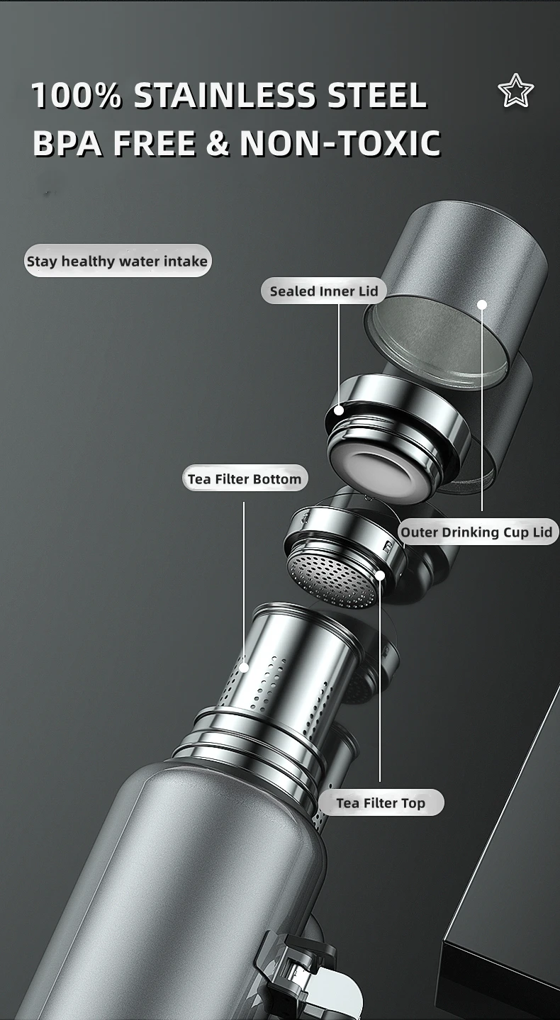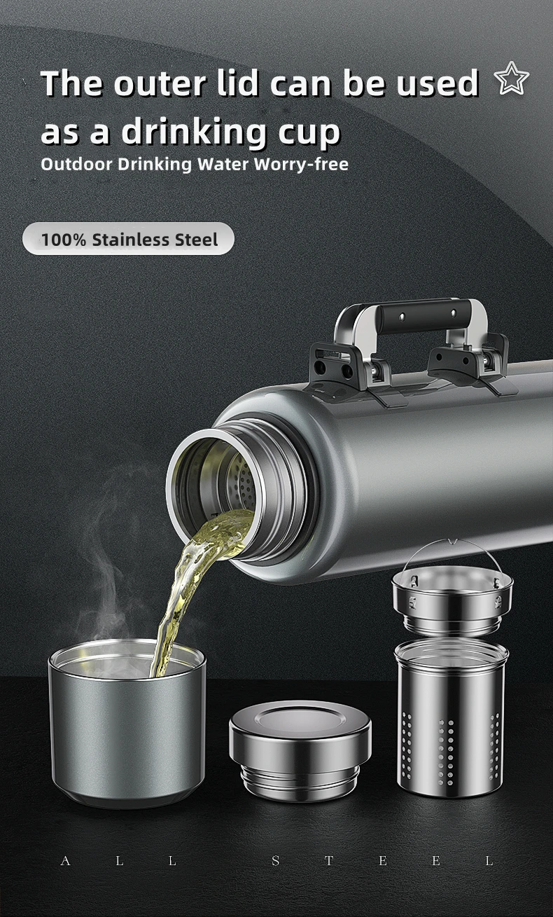 Stainless Steel Water Bottle, Portable Sports Bottle, BPA Free, Large Capacity, Bottle Bag and Handle,