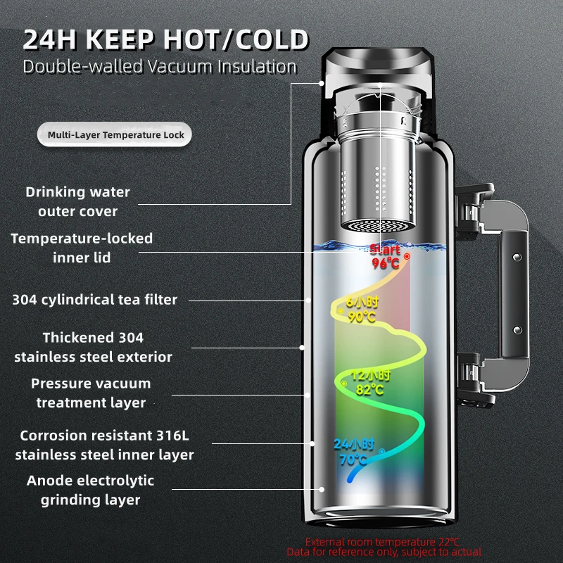 4. 6-Layer thermal insulation process design, the water temperature is more durable,keep water hot for 72 hours and keep cold for 48hours