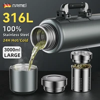 2/2.5/3L Stainless Steel Water Bottle Portable Sports Bottle Leakproof BPA-Free Large Capacity Thermos Bottle with Handle