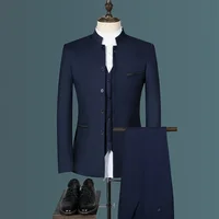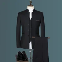 Stand Collar Men Blazer Pants Vest Business Men's Wedding Suit Jacket Coat Trousers Waistcoat High Quality Slim Vest Dress Set