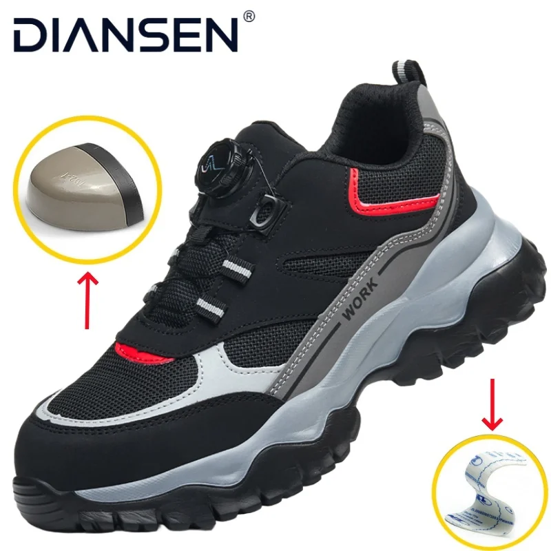 New Men's Rotary Buckle Safety Shoes Anti-Impact Anti-Piercing Lightweight Work Boots Fashion Sporty Design for Outdoor Pro