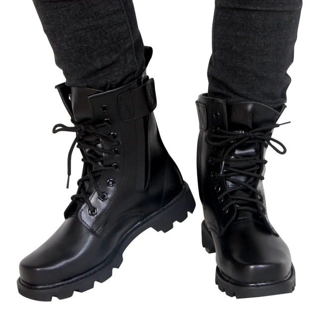 Steel Toe Men Boots Leather Safety Shoes for Men Spring Fashion Lace Up Black Ankle Platform Motorcycle