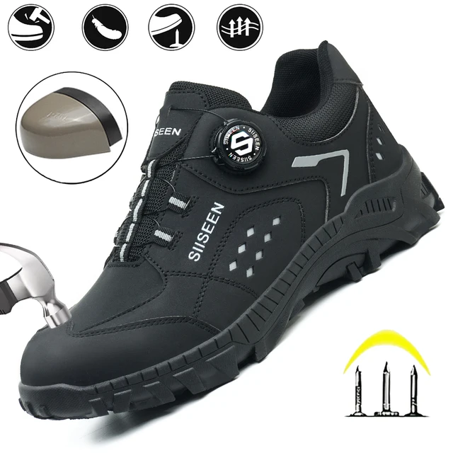Steel Toe Safety Shoes for Men - Puncture Proof, Slip Resistant & Durable Work Boots for Construction, Outdoor Industrial Use
