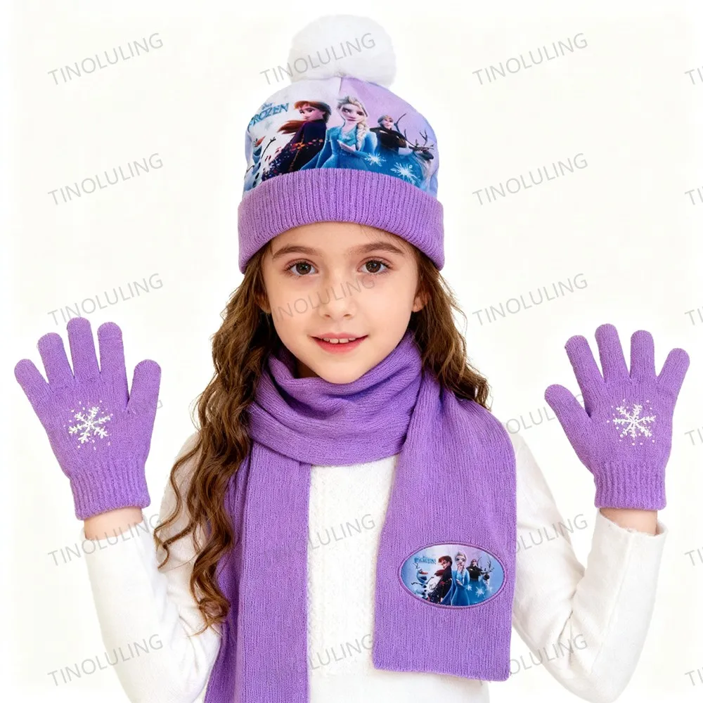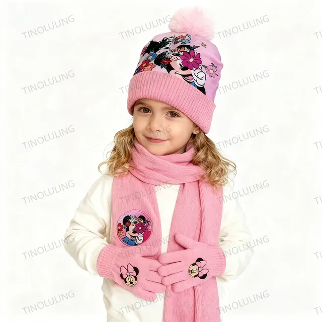 Boys Cartoon Hats 3pcs/Set Baby Warm Stretchy Caps 2 4 6 8 Years Children Spider Stitch Mickey Knitted Hat Scarf and Gloves Gift