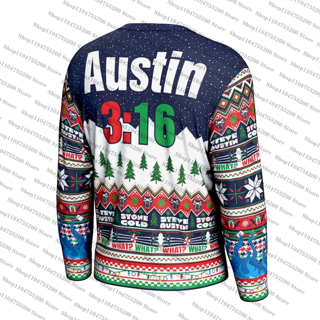 Stone Cold Steve Austin Ugly Christmas Holiday Sweater Men Women Pullover Round Neck Long Sleeve Top