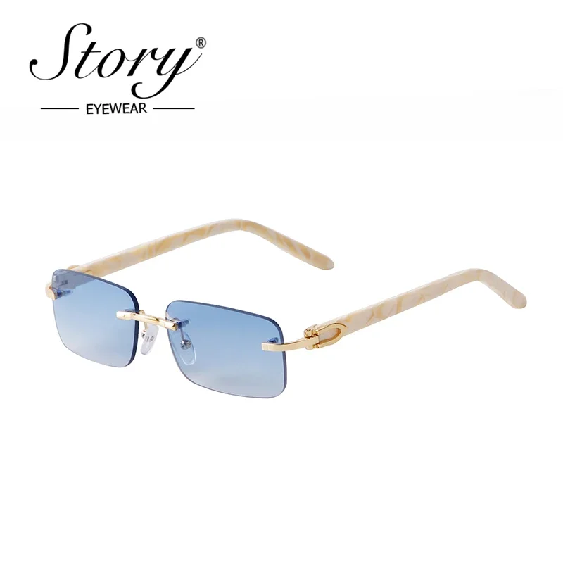 STORY 2022 Retro Frameless Marbling Frame Acetate Sunglasses Men Women Fashion Green Lenses Rimless Rectangle Sun Glasses S520C