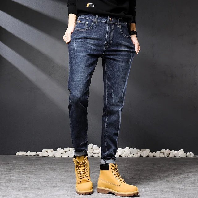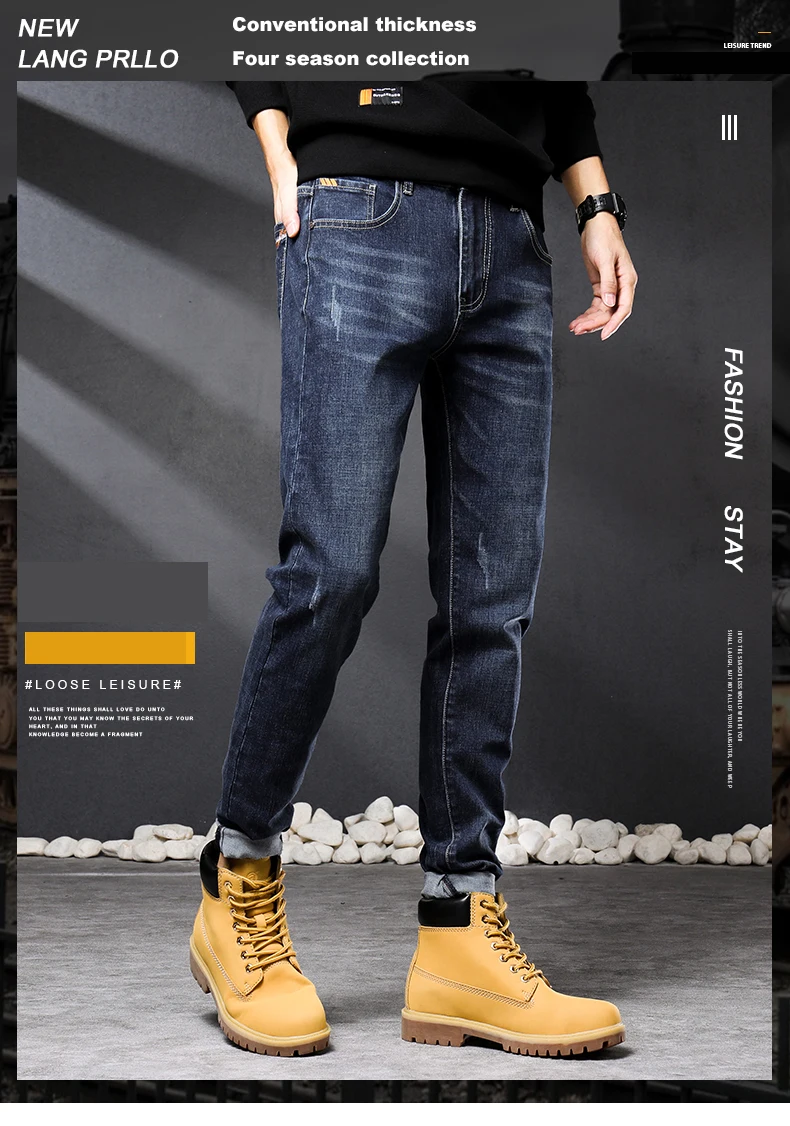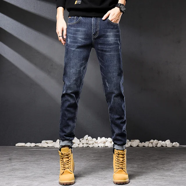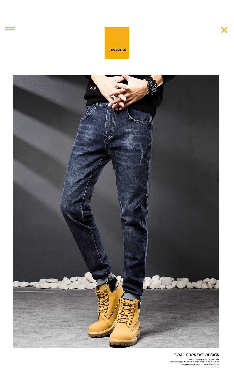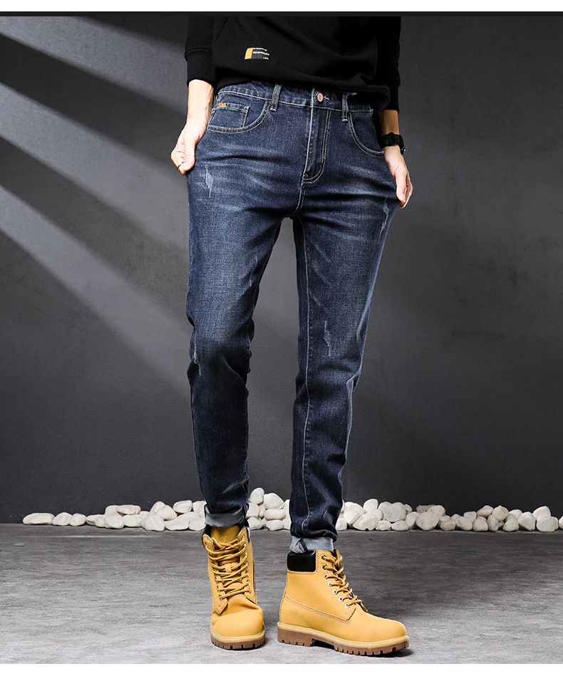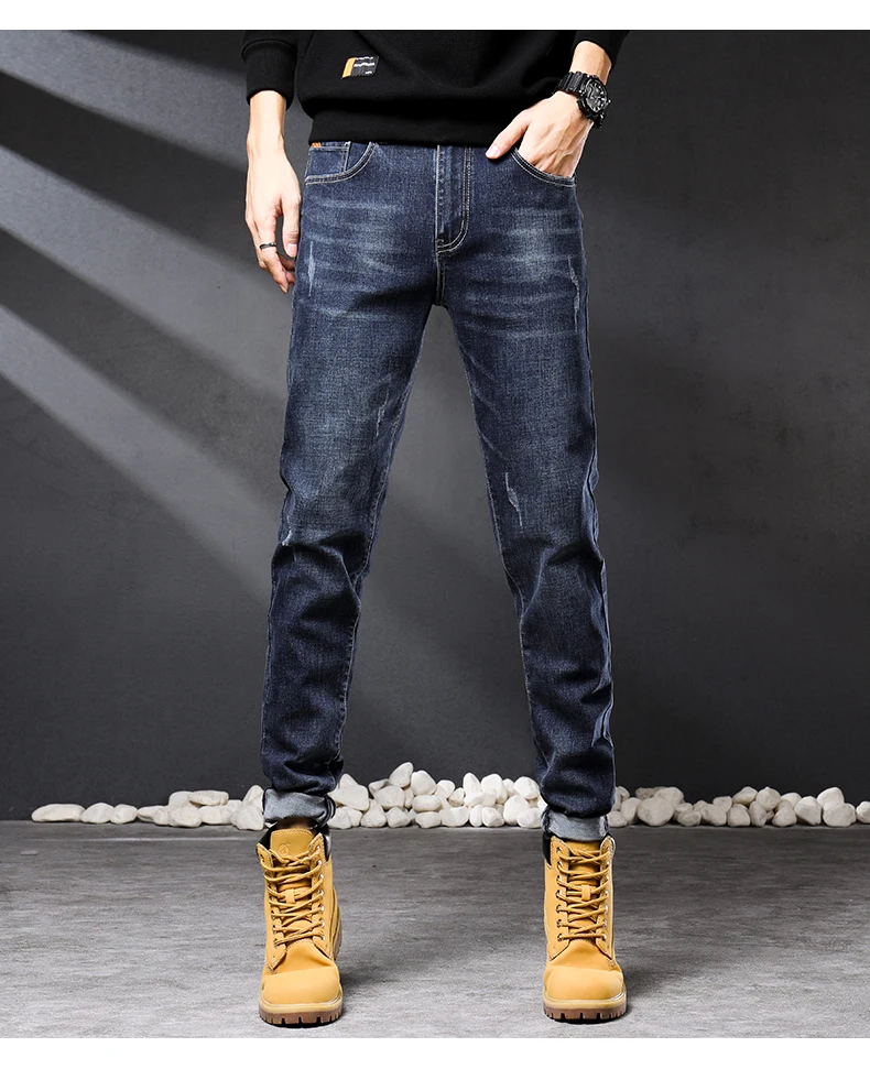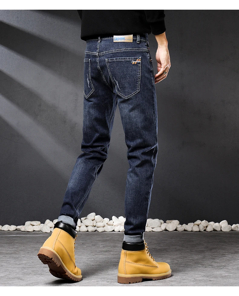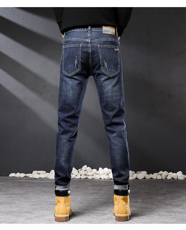 Street classic Skinny Tight trousers Fashion Men Slim Fit Jeans Trendy Stretch denim Casual Cotton Small
