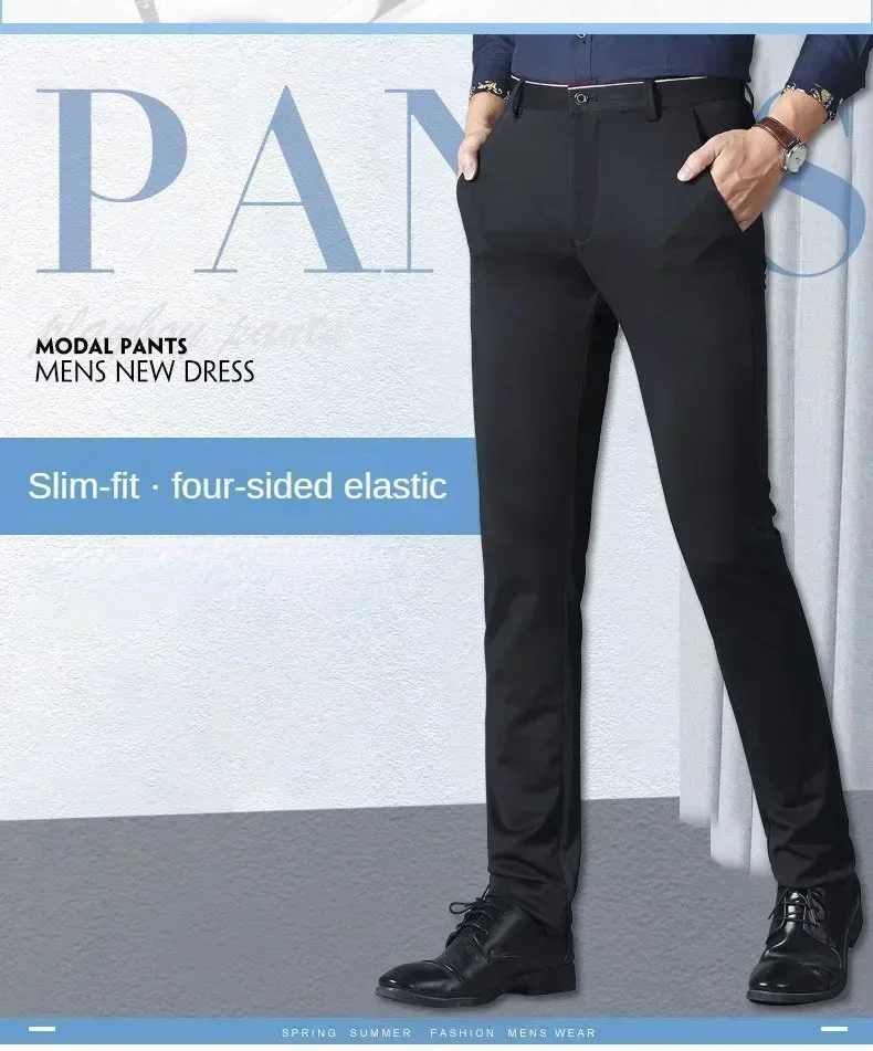Men Dress Pants Thin Suit Pants Stretch Slim Formal Trousers Calça Masculina Solid Casual Pantalone Hombre Fashion Men Clothing