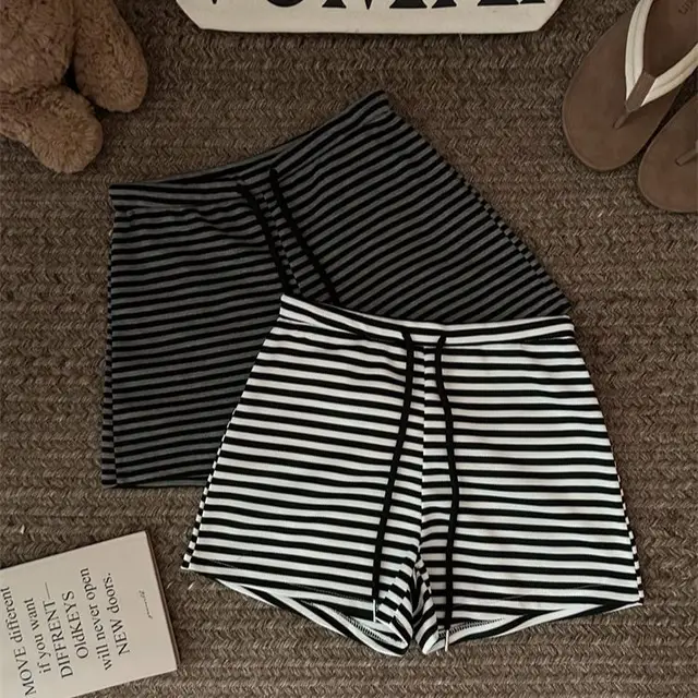 Striped Color Blo Casual Sports orts Women’s Summer Thin High Waist Slim Wide Leg Hot Pants ort