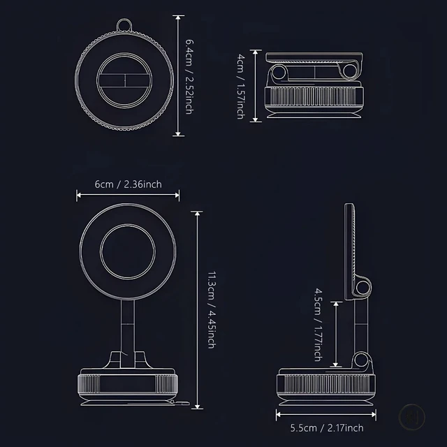 Strong Magnetic Car Phone Holder Foldable Design 360° Adjustable Vacuum Mount for Car/Desk/Bathroom/Universal Use