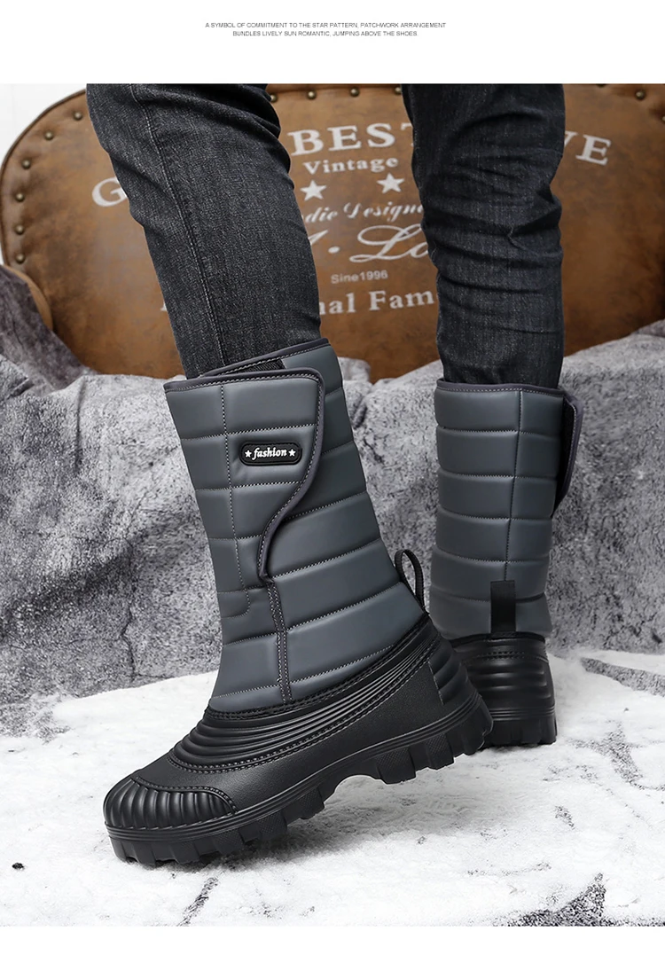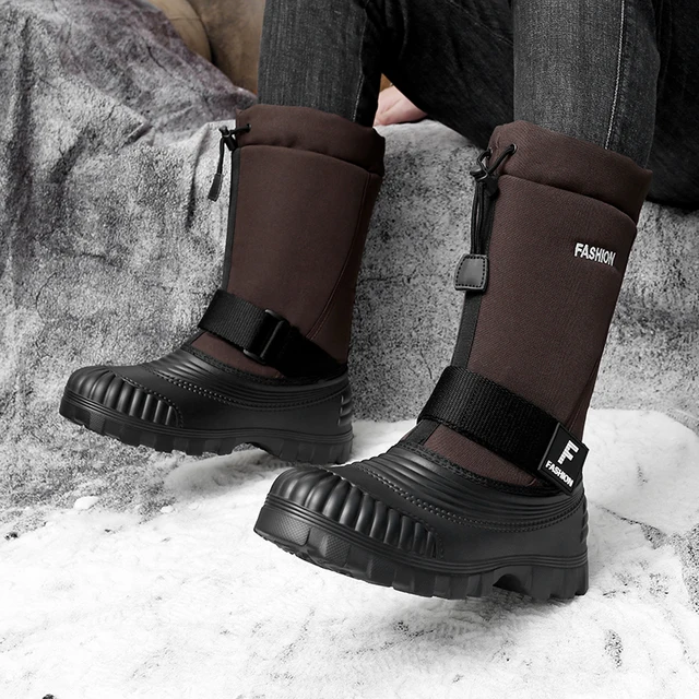 -37%STRONGSHEN Winter Men Snow Boots Platform Waterproof Non-slip Warm Cotton Work Boots Outdoor Male High Top Fishing Ski Boots
