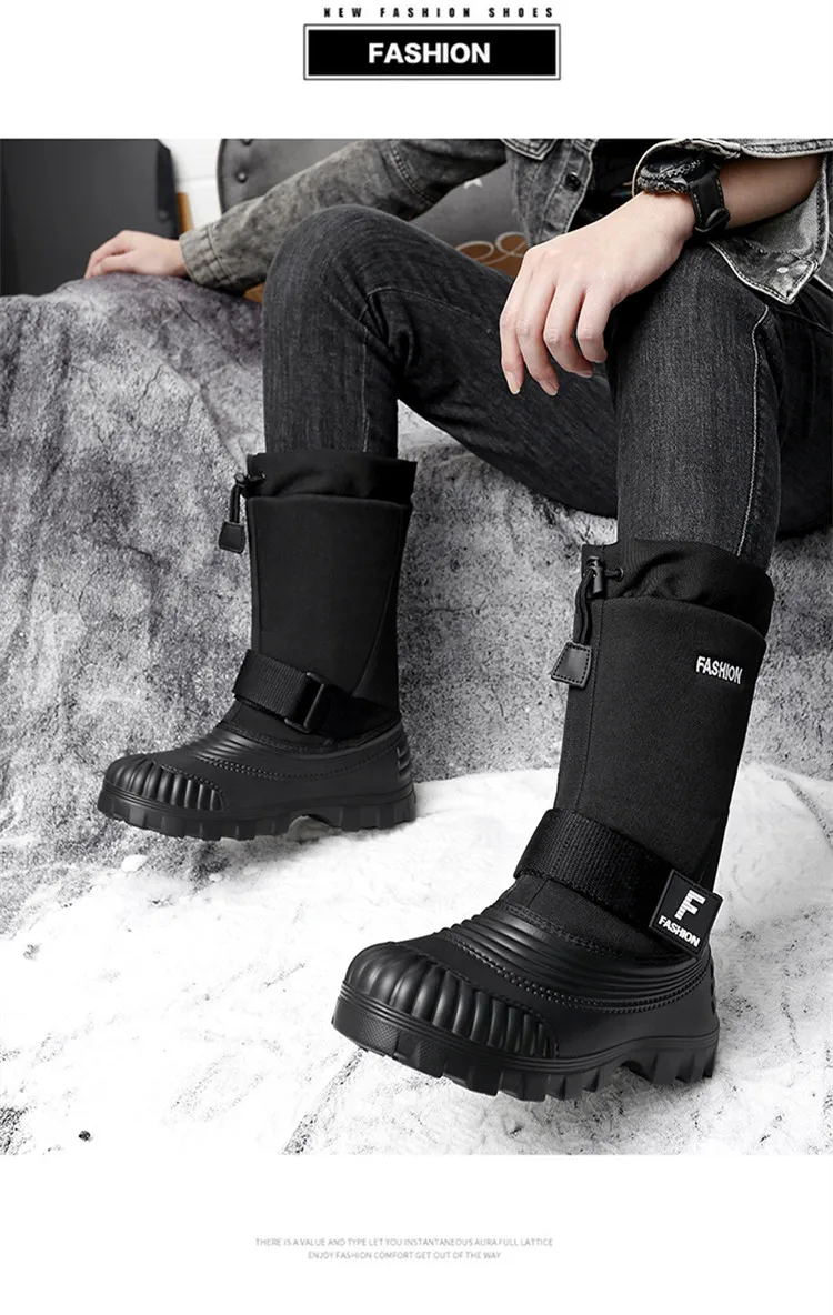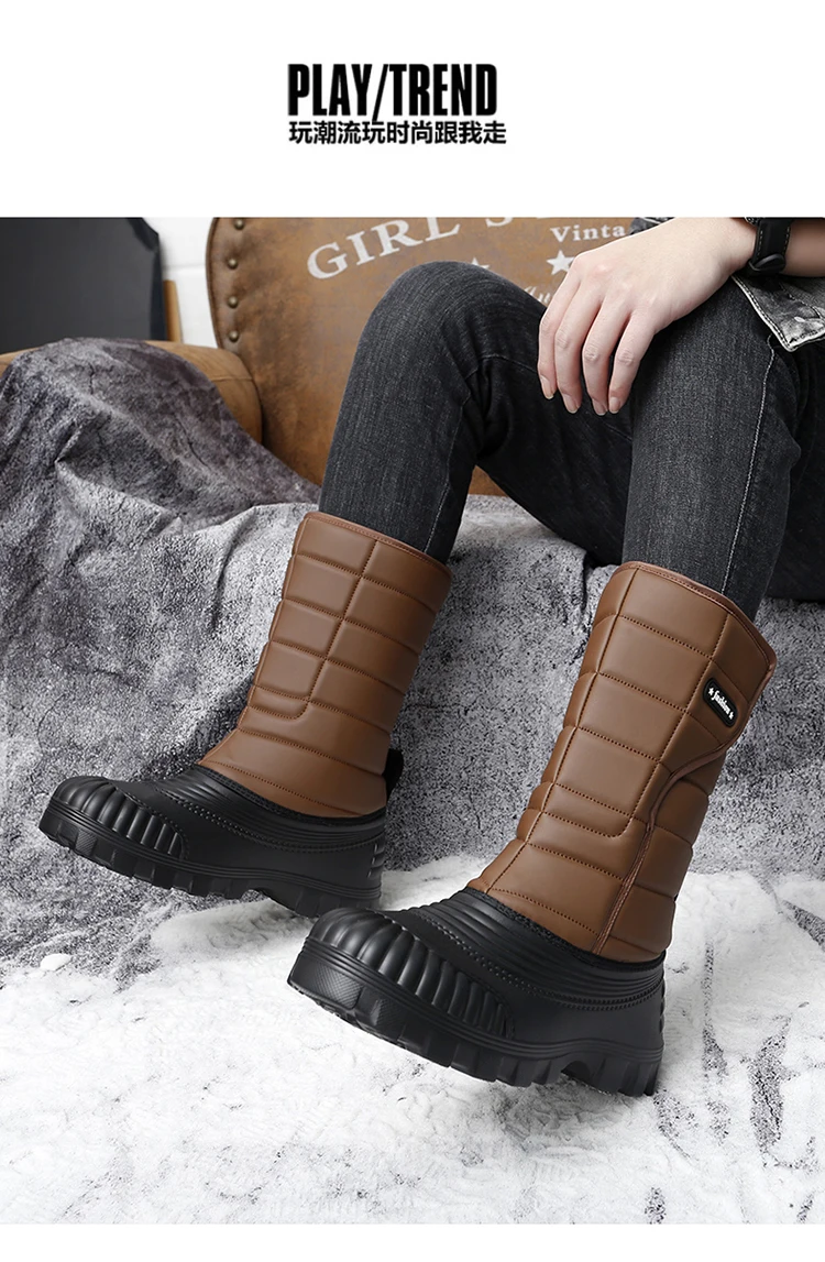 STRONGSHEN Winter Men Snow Boots Platform Waterproof Non-slip Warm Cotton Work Boots Outdoor Male High Top Fishing Ski Boots