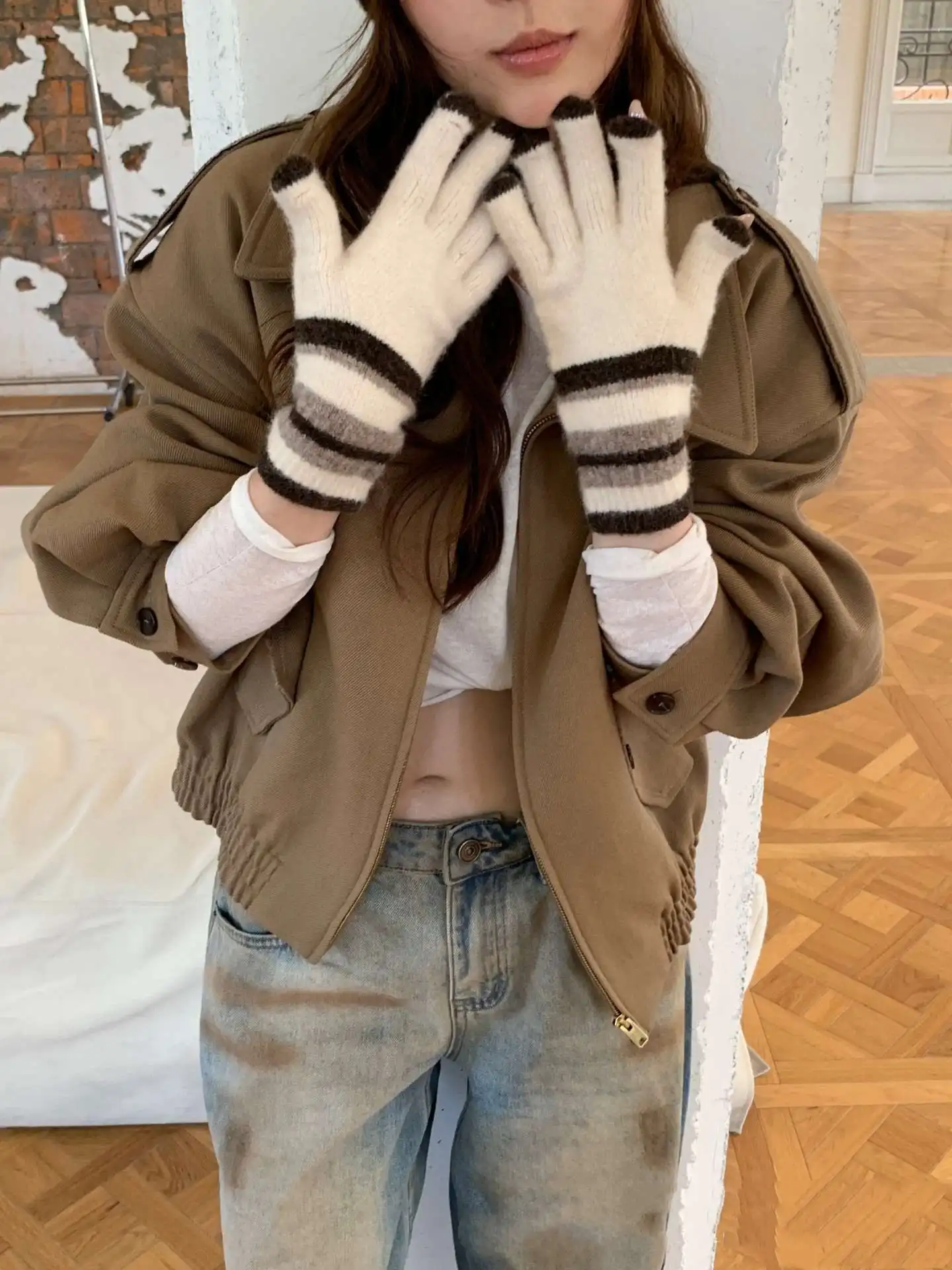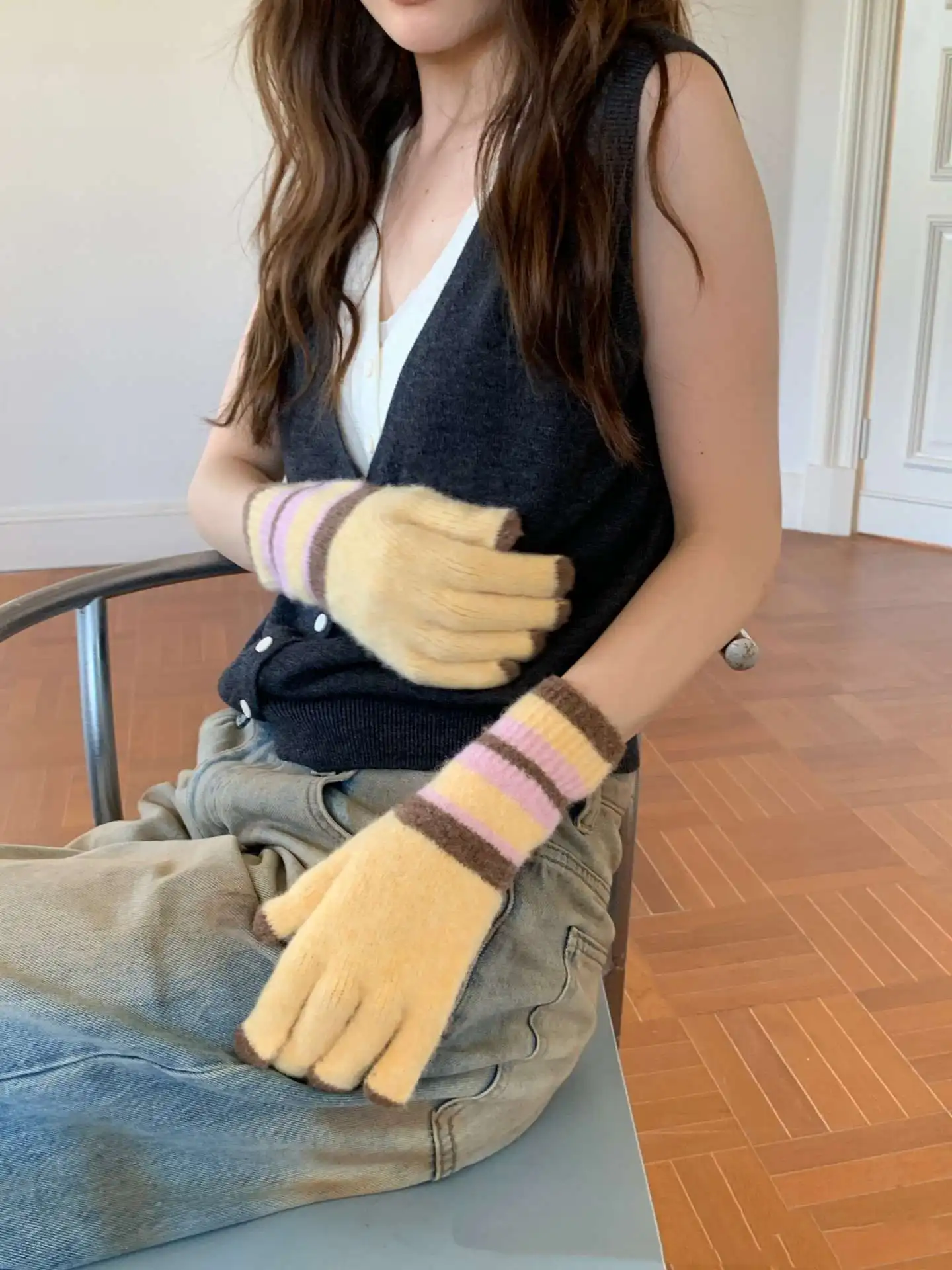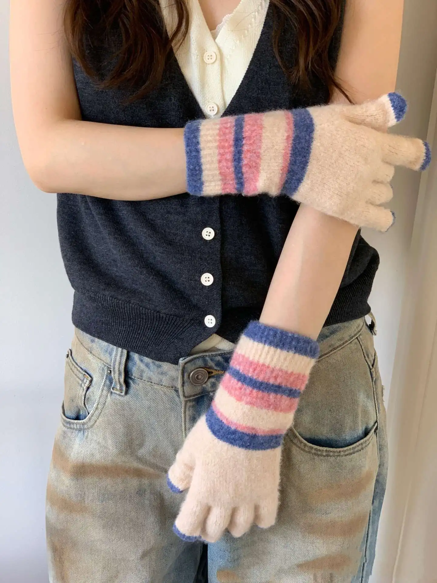 Student Cycling Knitted Gloves Women’s Warm Windproof Anti-Slip Palm Biking Daily School Winter