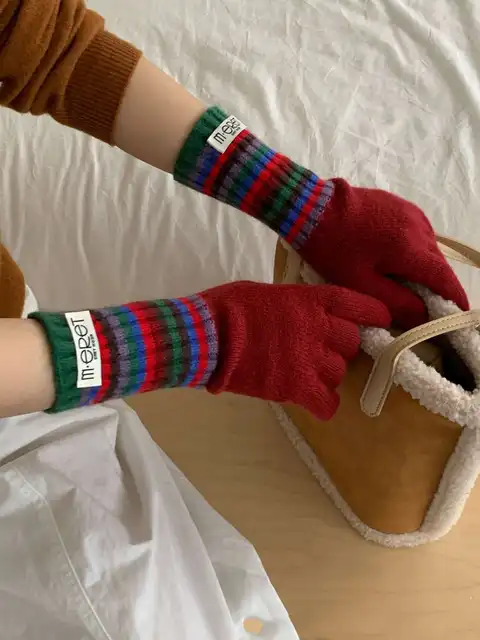 Student Cycling Knitted Gloves Women’s Warm Windproof Anti-Slip Palm Biking Daily School Winter
