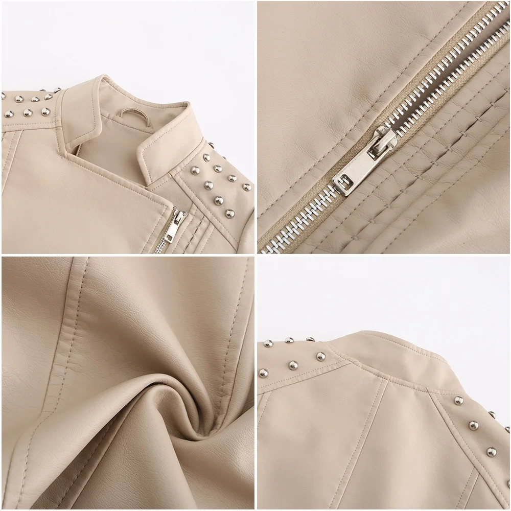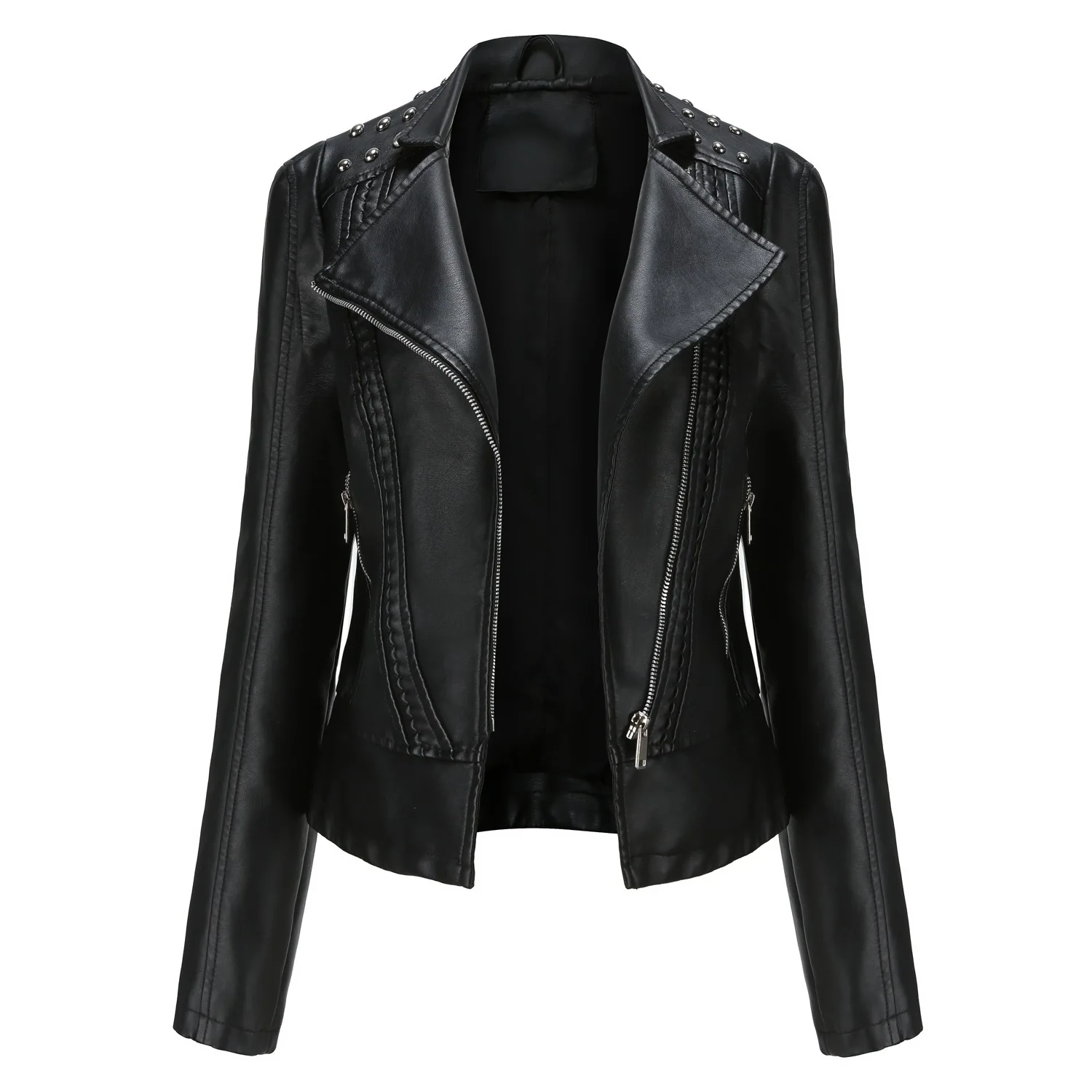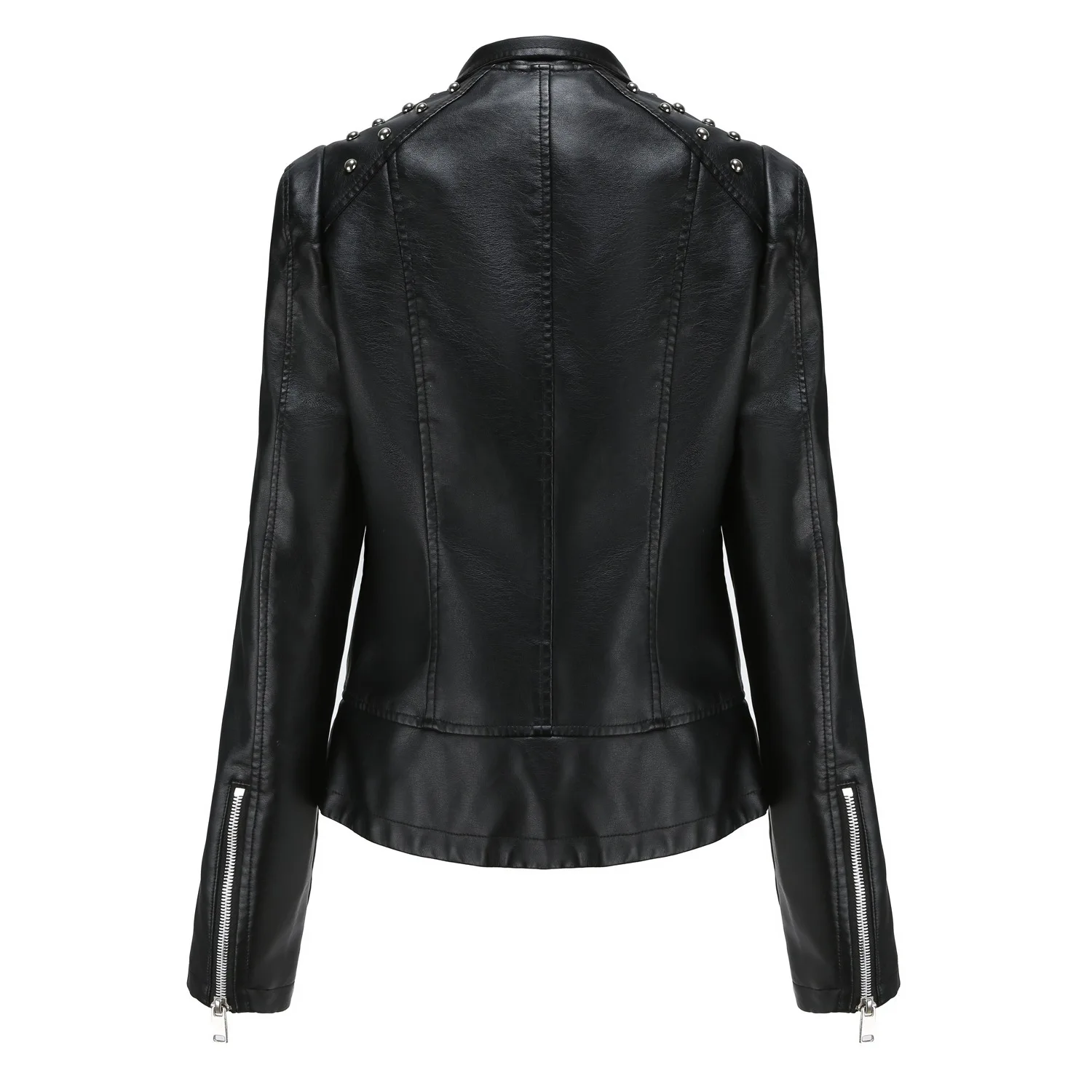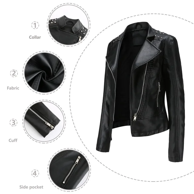 Fashion Solid Faux Leather Jacket Women Turn-down Collar Zipper Front Puffy Sleeves Stylish Coat 2025 Female Winter Outerwear