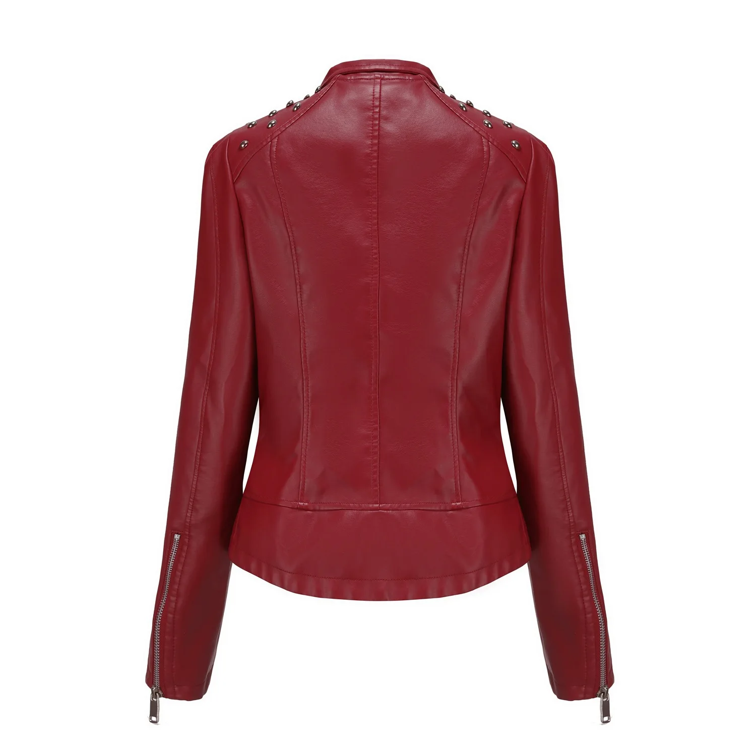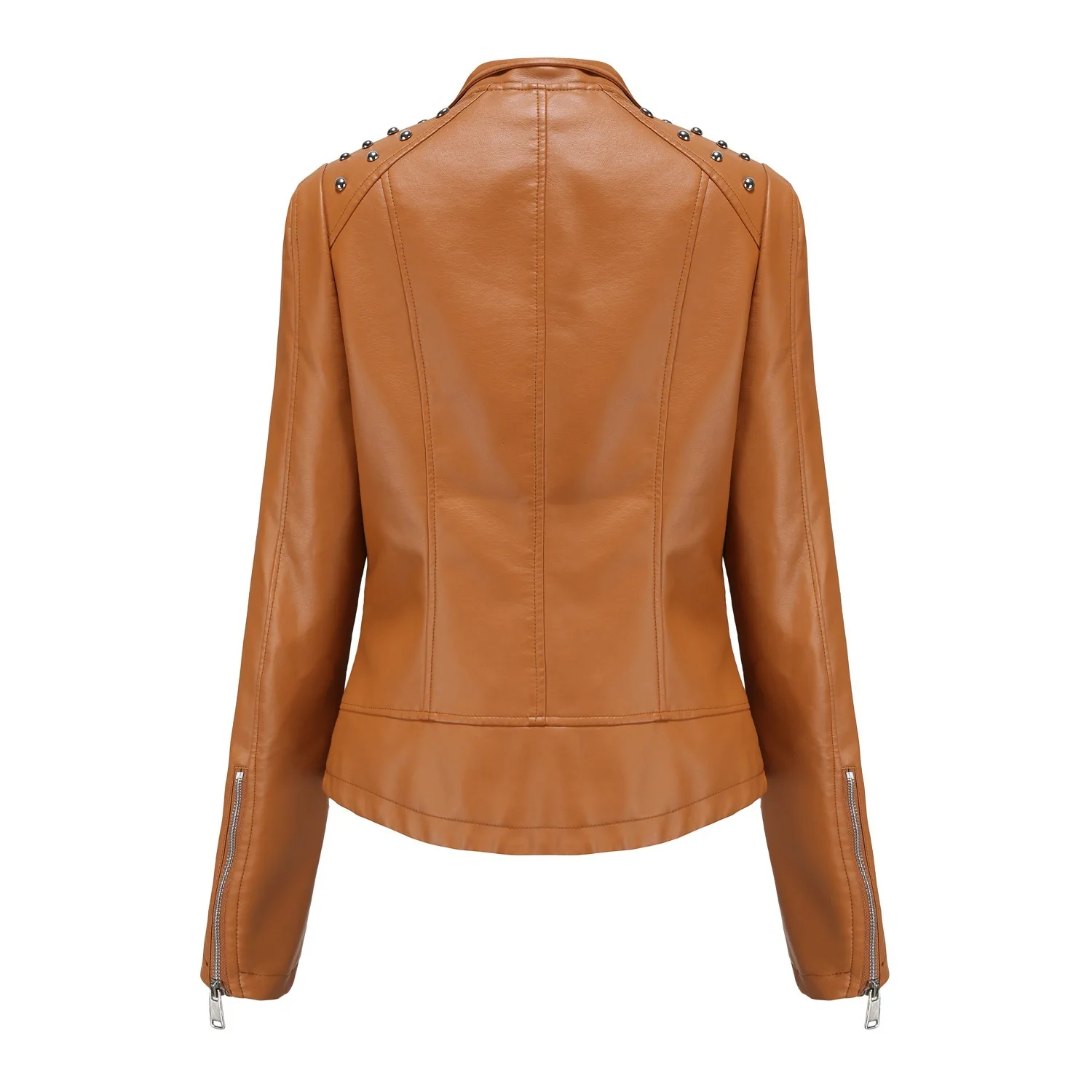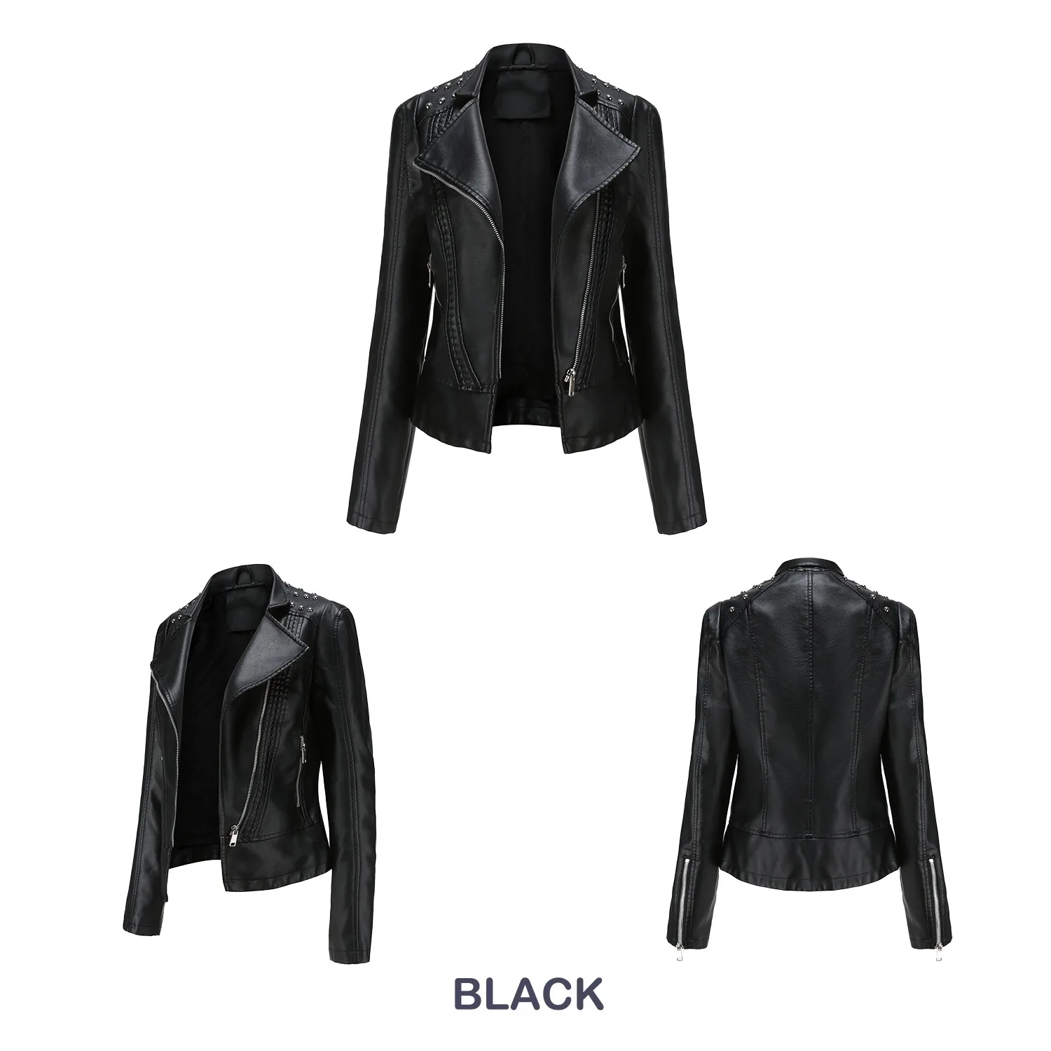 Fashion Solid Faux Leather Jacket Women Turn-down Collar Zipper Front Puffy Sleeves Stylish Coat 2025 Female Winter Outerwear