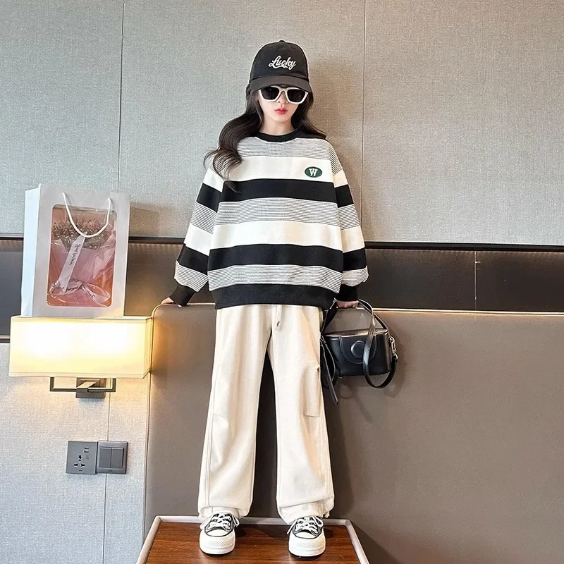 Stylish Children’s Sweatshirt 2-piece Set Loose-fit Autumn Clothing For Girls Kids Streetwear Spring