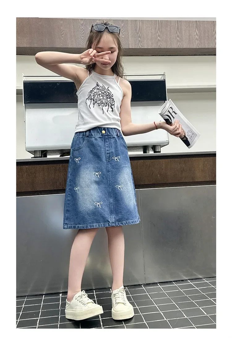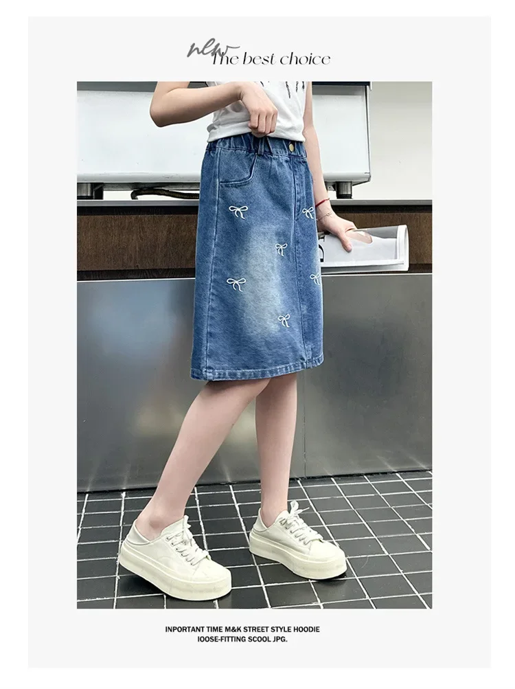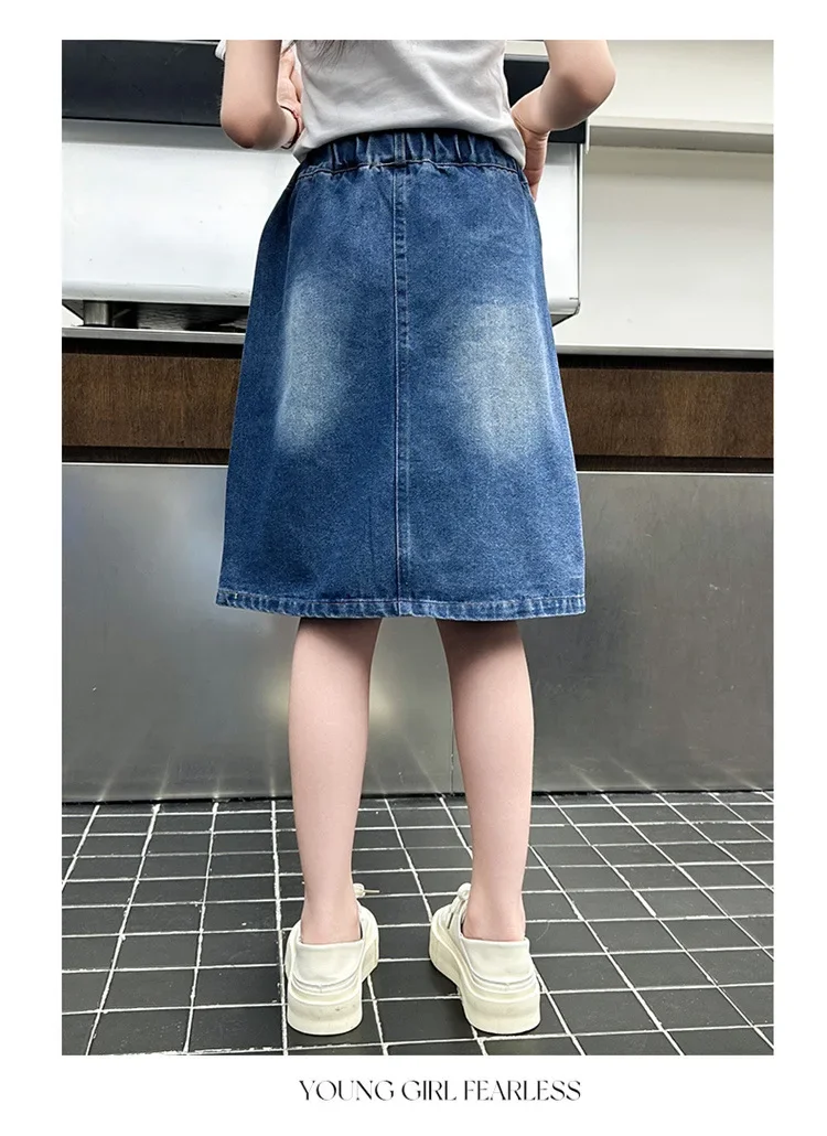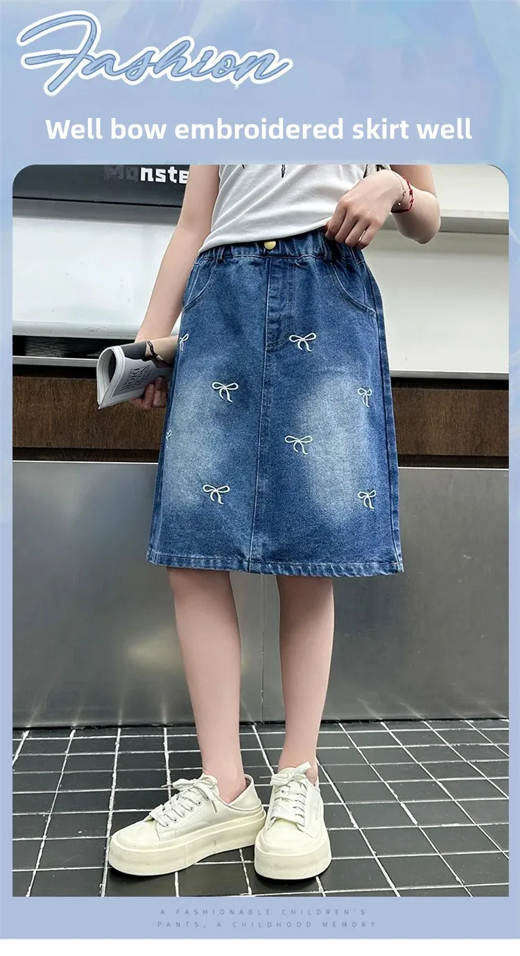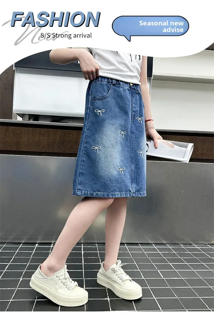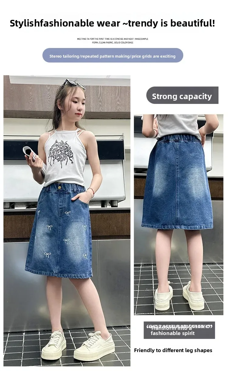 Stylish Korean Version Girls' Denim Skirt Mid-Term Large Children's Summer New Arrival Trendy Half-length Skirt for Kids