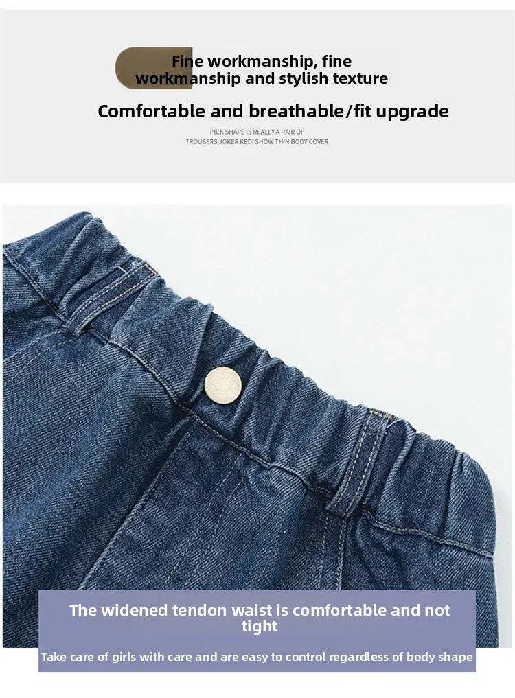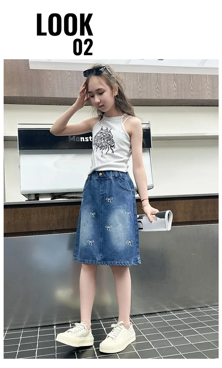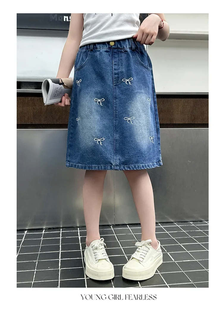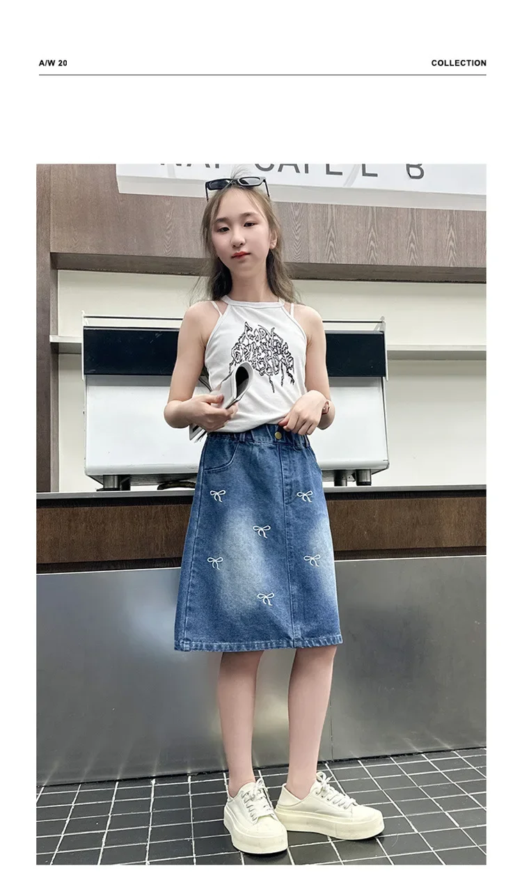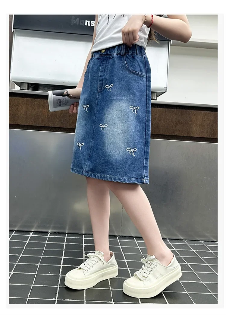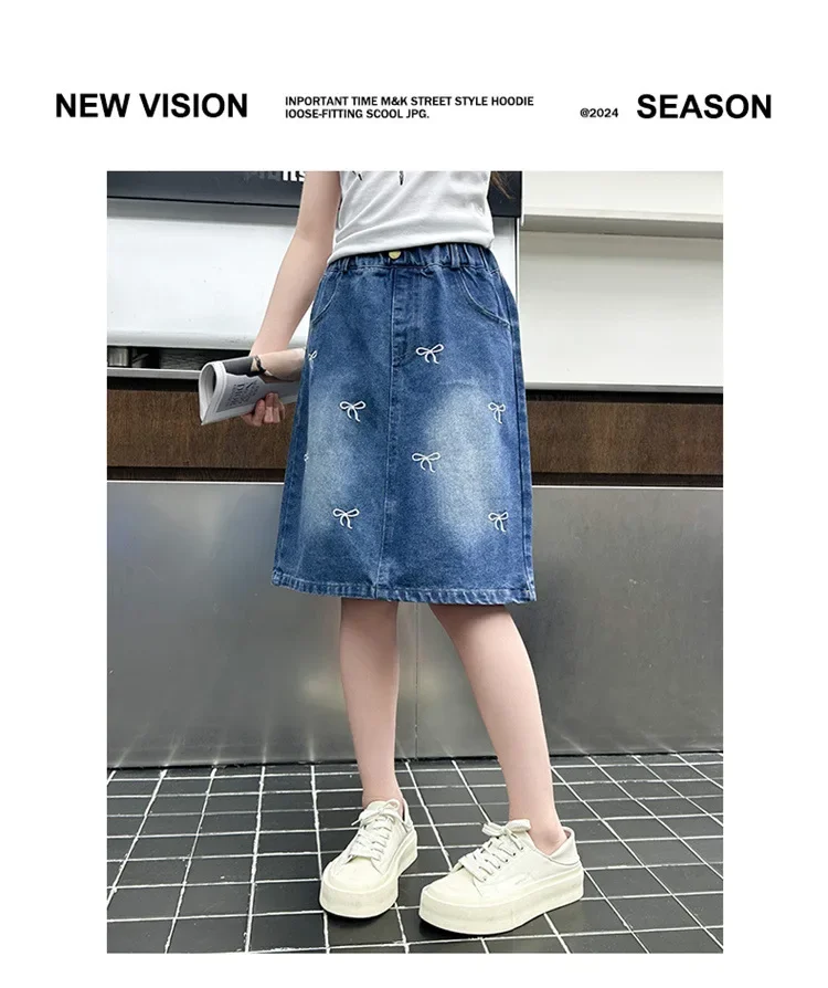 Stylish Korean Version Girls' Denim Skirt Mid-Term Large Children's Summer New Arrival Trendy Half-length Skirt for Kids