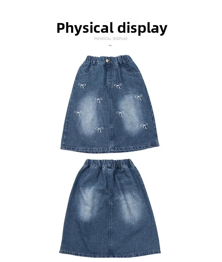 • Korean Western Style : This girls’ denim skirt boasts a trendy Korean Western style, perfect for fashion-forward children.