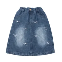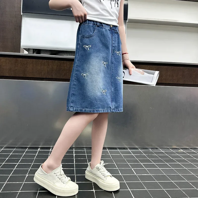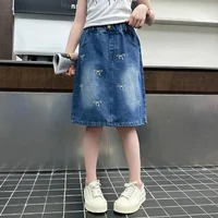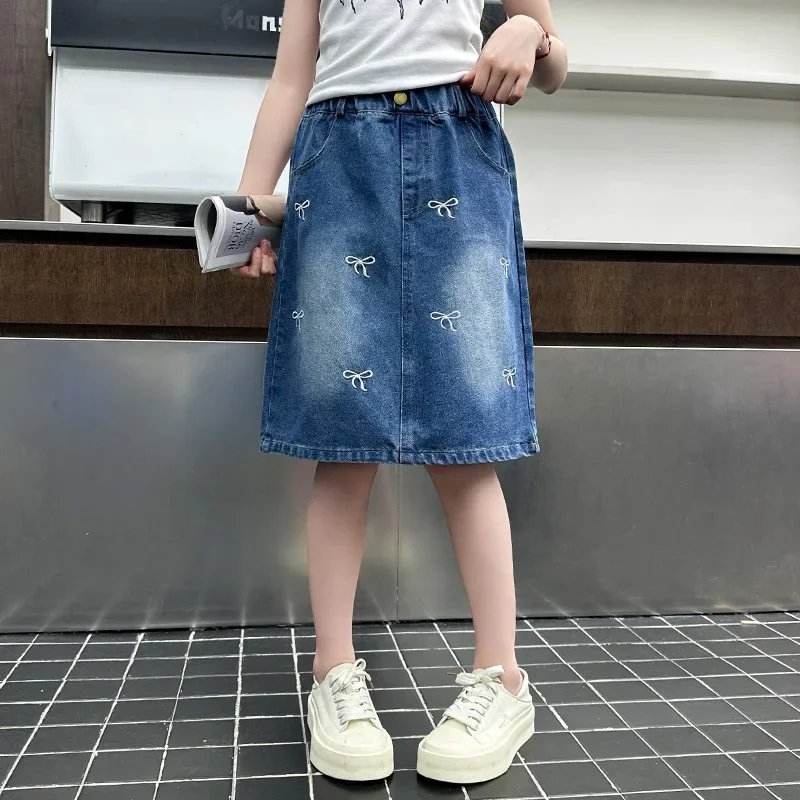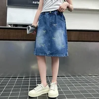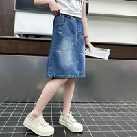 Stylish Korean Version Girls' Denim Skirt Mid-Term Large Children's Summer New Arrival Trendy Half-length Skirt for Kids