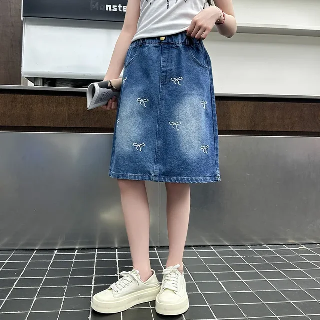 Stylish Korean Version Girls’ Denim Skirt Mid-Term Large Children’s Summer New Arrival Trendy