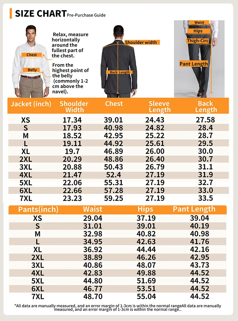 •Due to everyone’s different dressing styles and preferences, it is recommended to personally measure your own body size and refer to the size chart