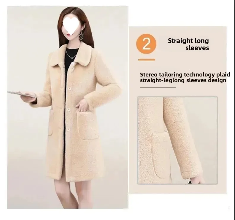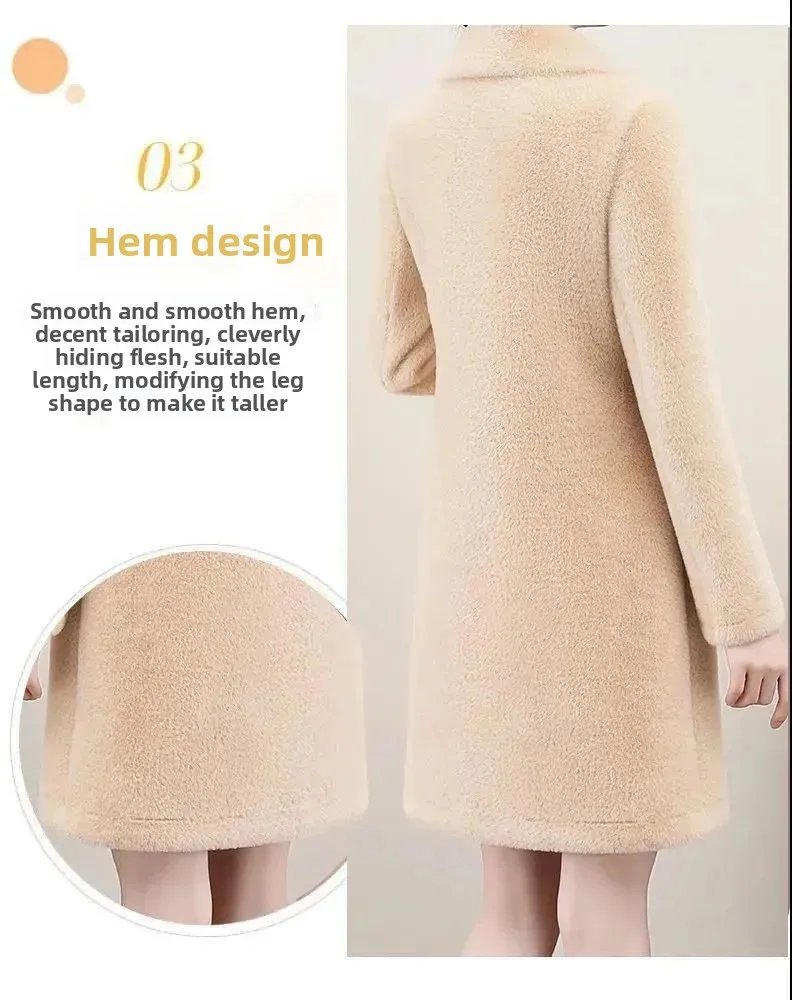 Stylish Mid-Length Lamb Velvet Jacket Women's Winter Coat Large Size Korean Style Fashionable Women's Coat Thickened Polyester F