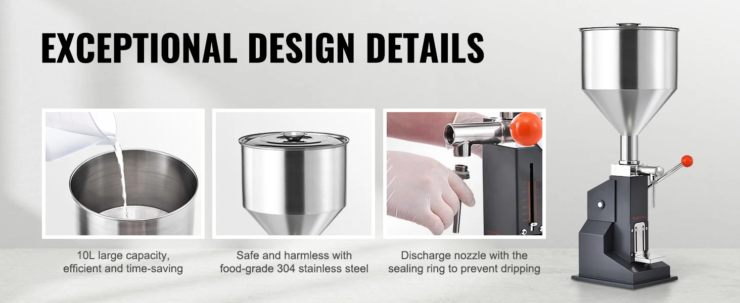 Reinforced Handle: Say goodbye to strenuous filling! Our manual filling machine features a reinforced handle with a smart spring design. It’s super user-friendly – just pull down, and you’re ready to fill. No more worrying about spring breakage. It’s all about durability and effortless operation.