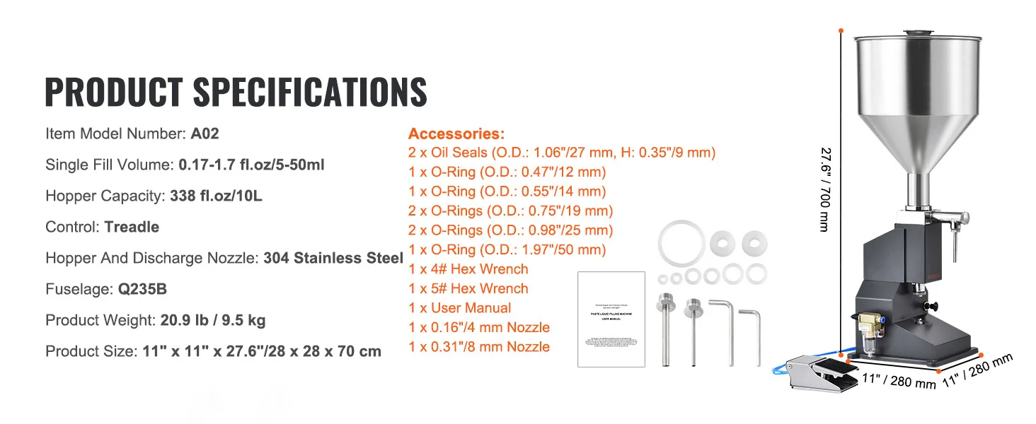 Food-Grade Material: Security meets durability! Unlike others, our manual paste liquid filling machine uses food-grade materials throughout. No need to worry about corrosion. The 304 stainless steel is tough, can handle high temperatures up to 392℉/200℃, and ensures no reactions with your liquids.