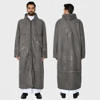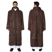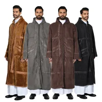 Suede Velvet Abaya Muslim Men's Prayer Robe Thickened Coat Warm Hooded Cardigan Eid Djellaba Islam Jubba Thobe Abaya Winter New