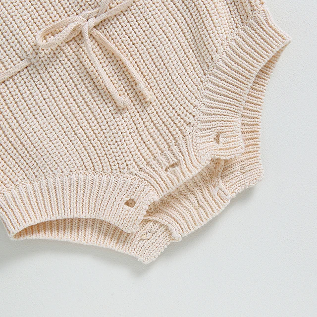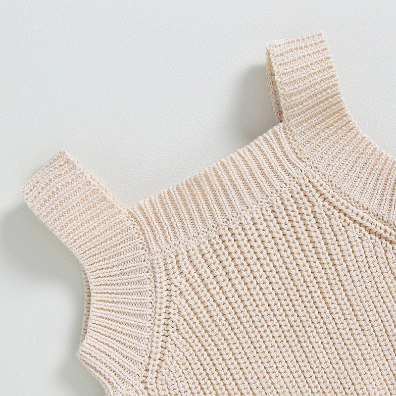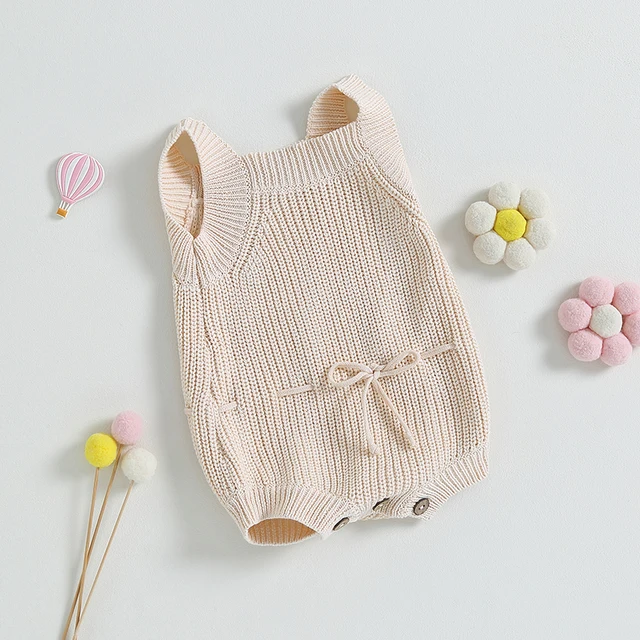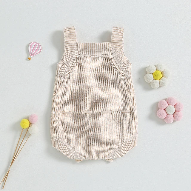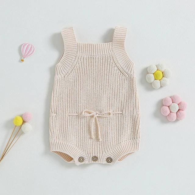 Baby Fall Sweater Romper Casual Sleeveless Square Neck Solid Color Knit Bodysuit Infant Outfit