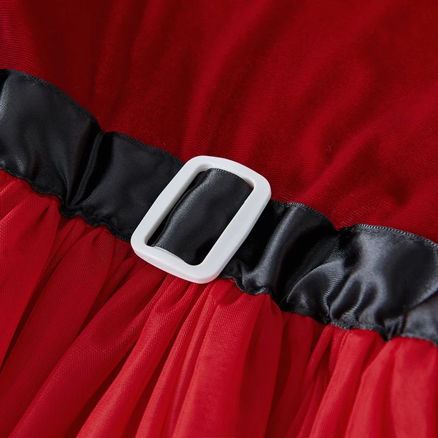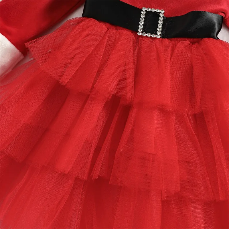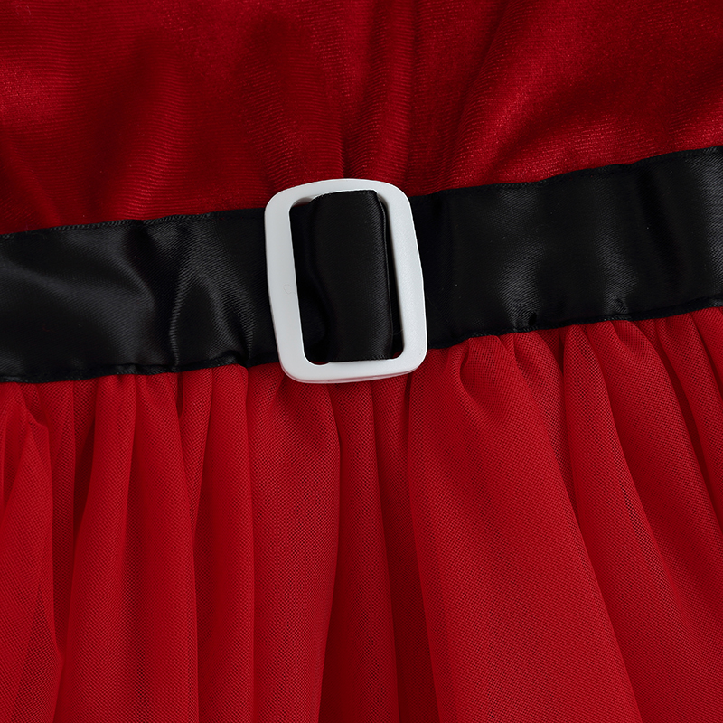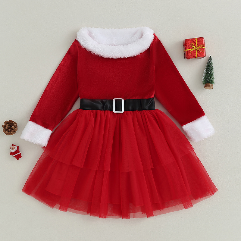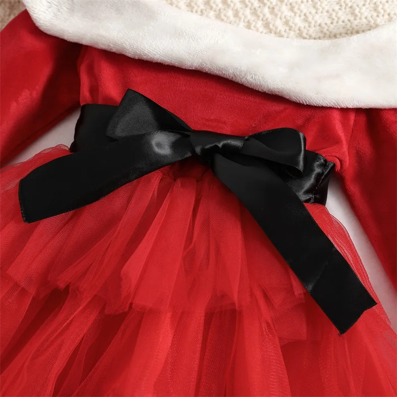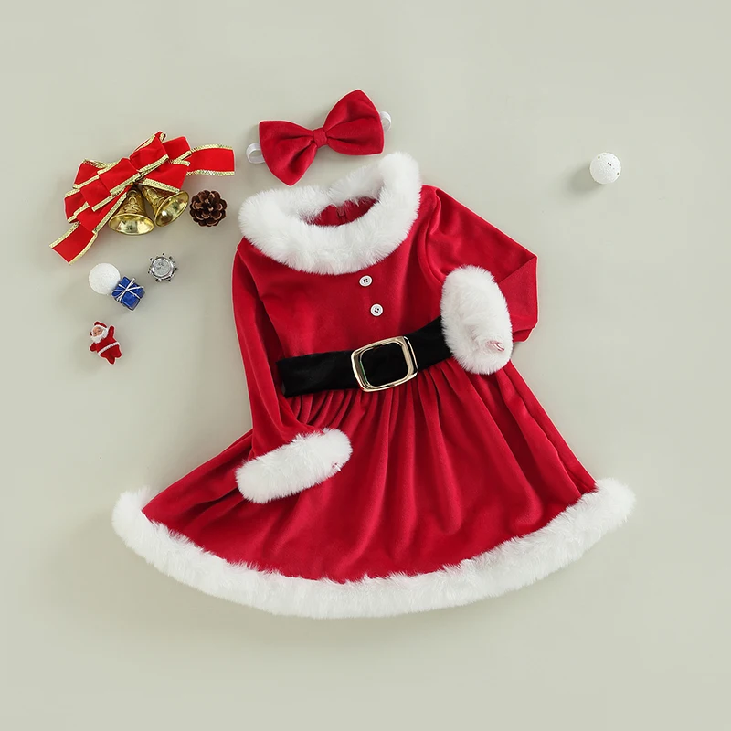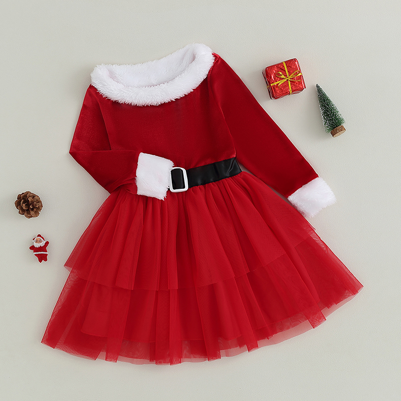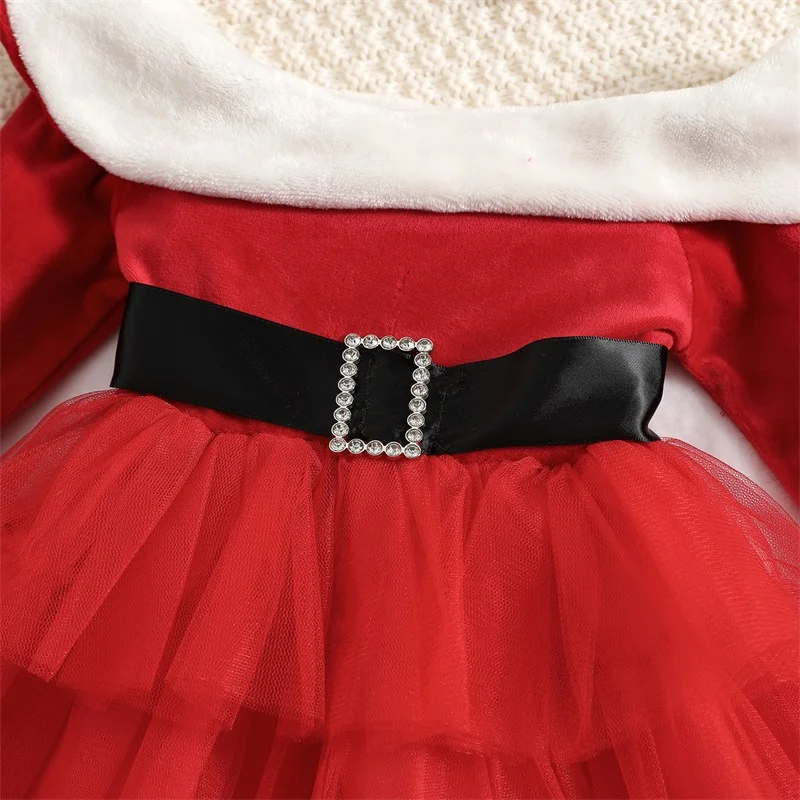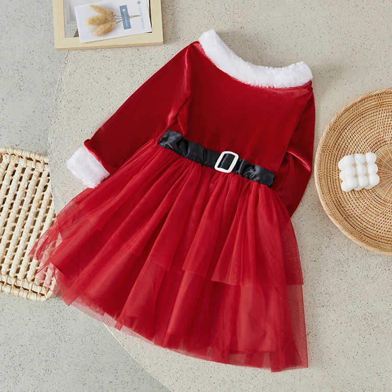 Kids Girls Dress Christmas Clothes Velvet Dress Patchwork Belt Decor Long Sleeve Dress Fall Winter Princess Dress