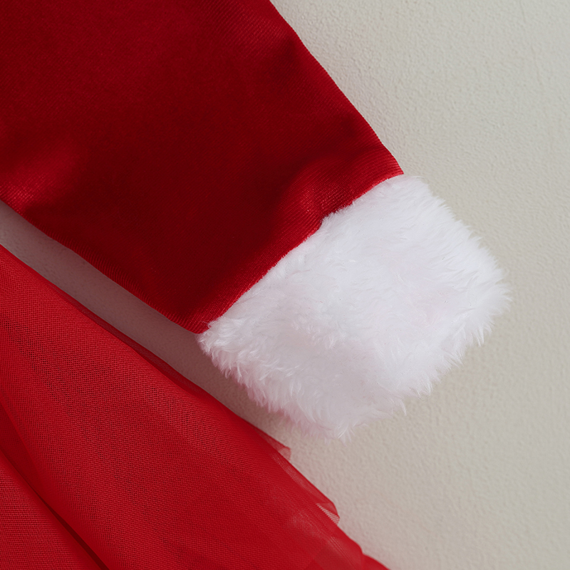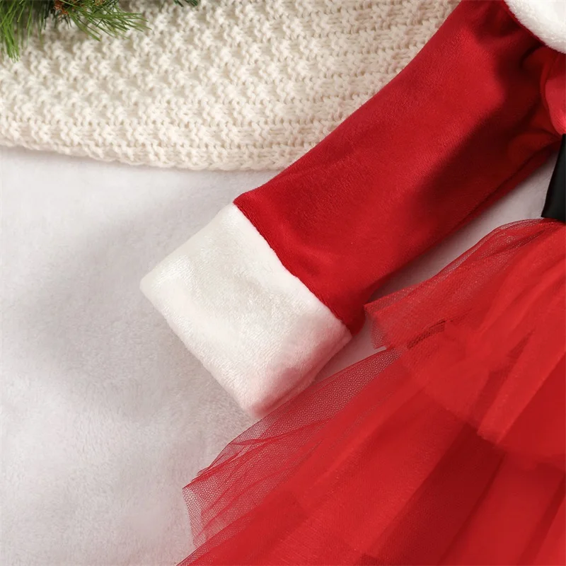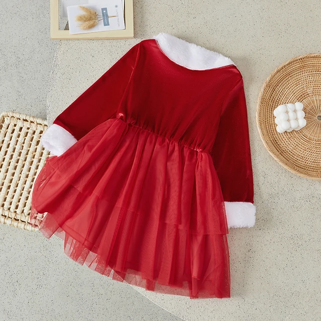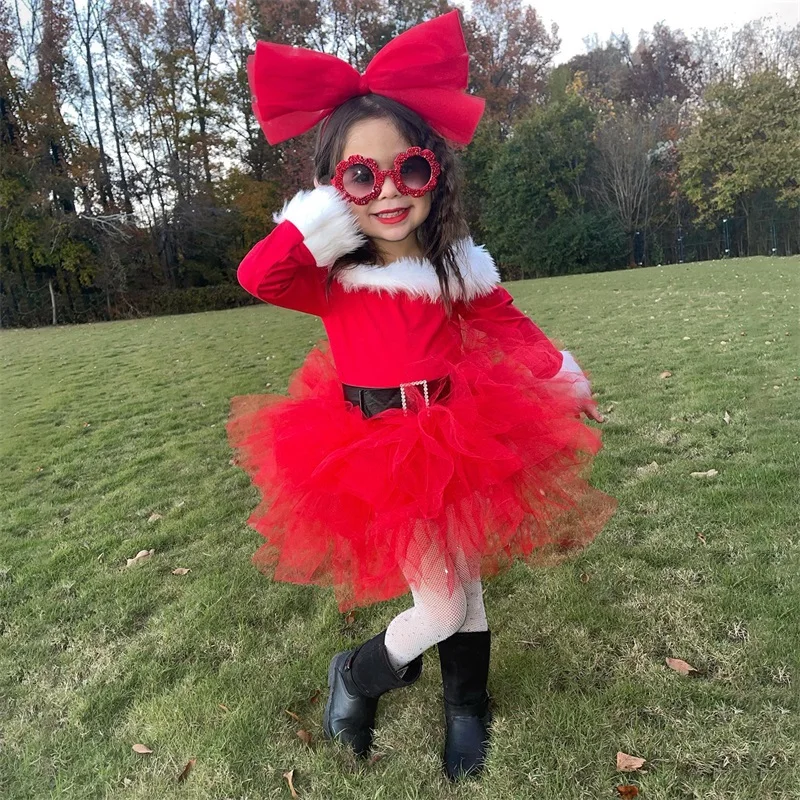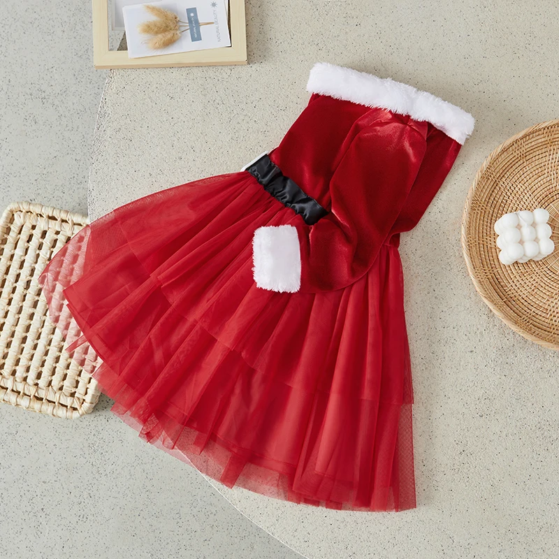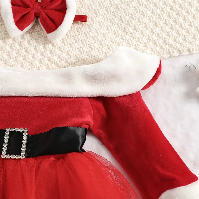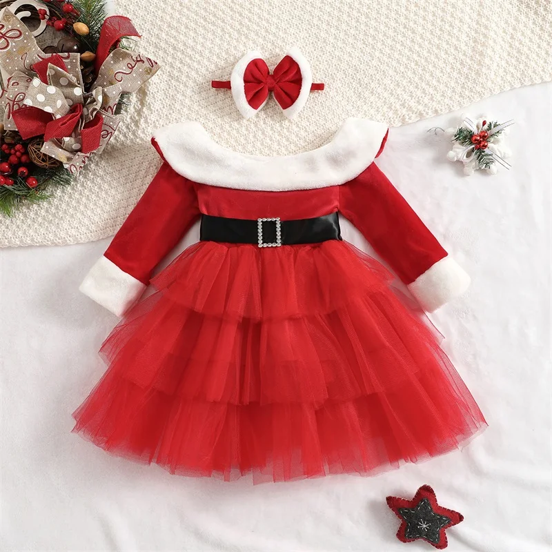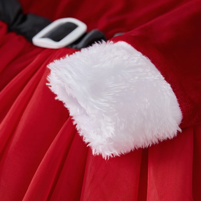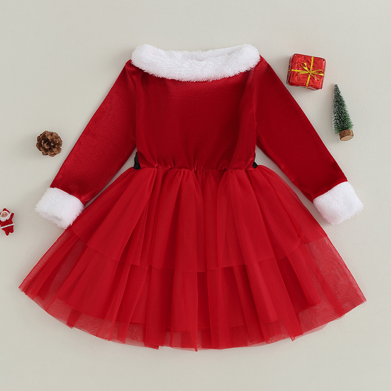 Kids Girls Dress Christmas Clothes Velvet Dress Patchwork Belt Decor Long Sleeve Dress Fall Winter Princess Dress