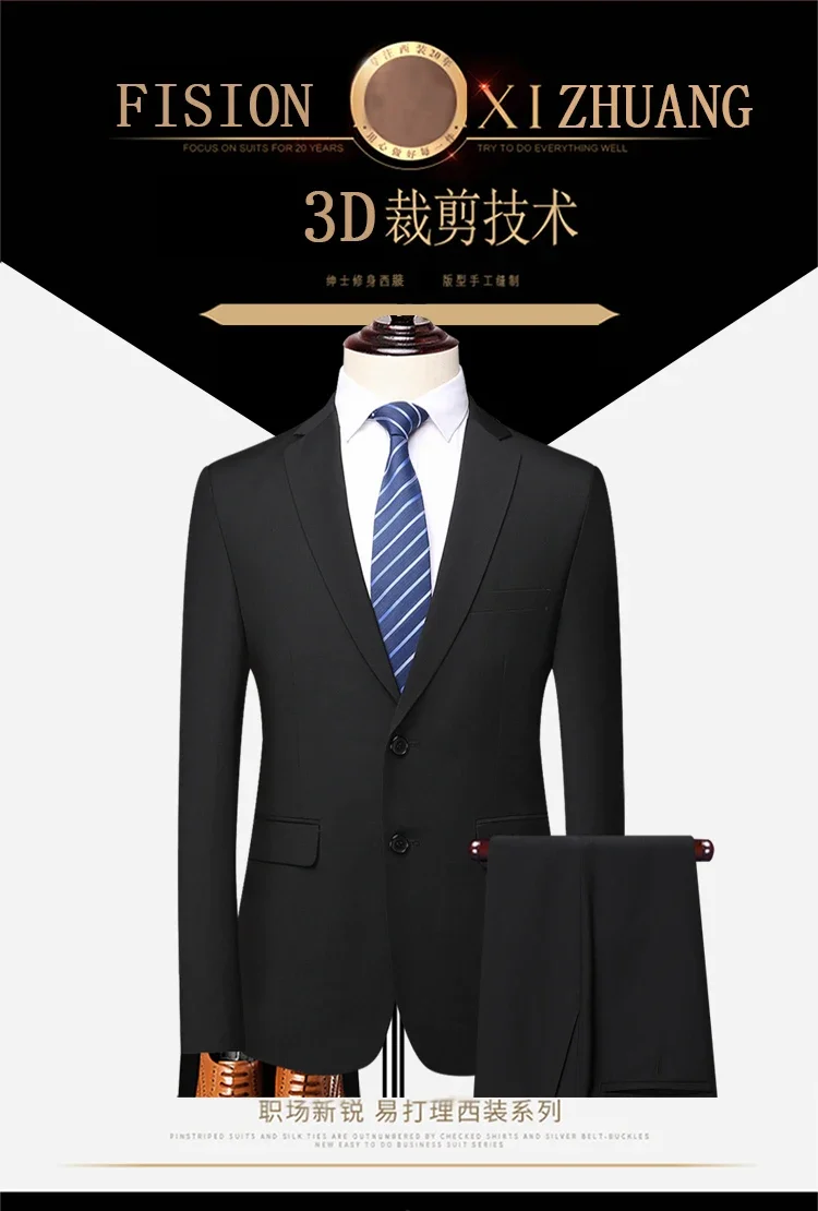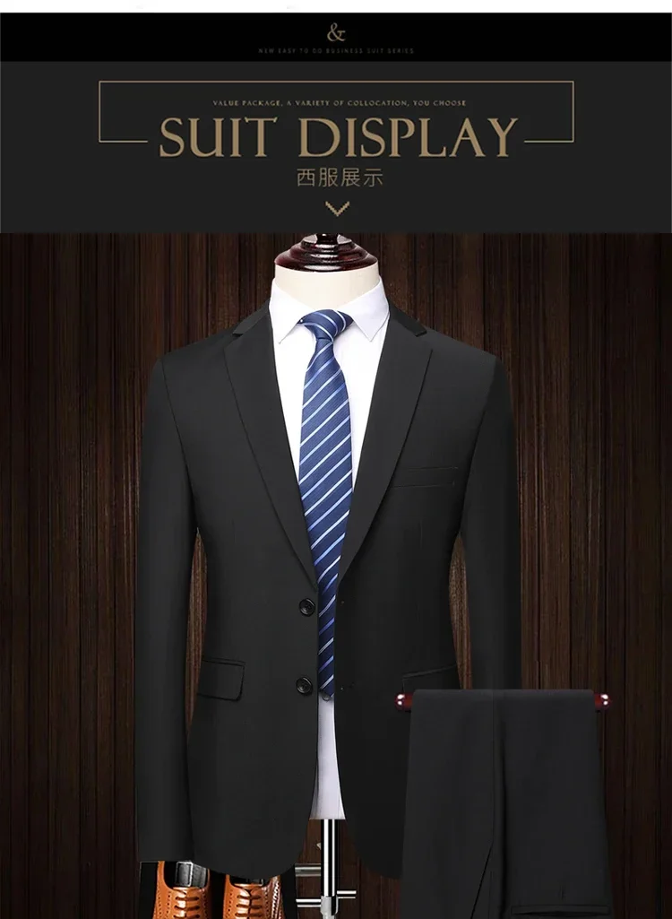 Suit (Blazer+ Pants) Men’s Fashion Business Large Size Suit Professional Work Clothes Groom Wedding