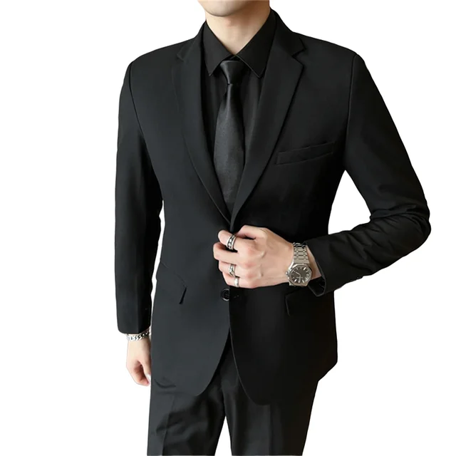 Suit  (Blazer+ Trousers) Men's Casual Formal Business Gentleman Solid Color Hosting Four Seasons Slimming Wedding Fashion Suit