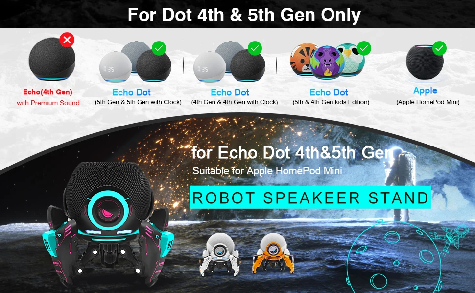 1.Protective bracket: Specially designed to hold a smart speaker up to 4” in width, our stand keeps it elevated for easy protection! Compatible with for Echo Dot 4st-5th generation models, it’s a must-have for tech-lovers.